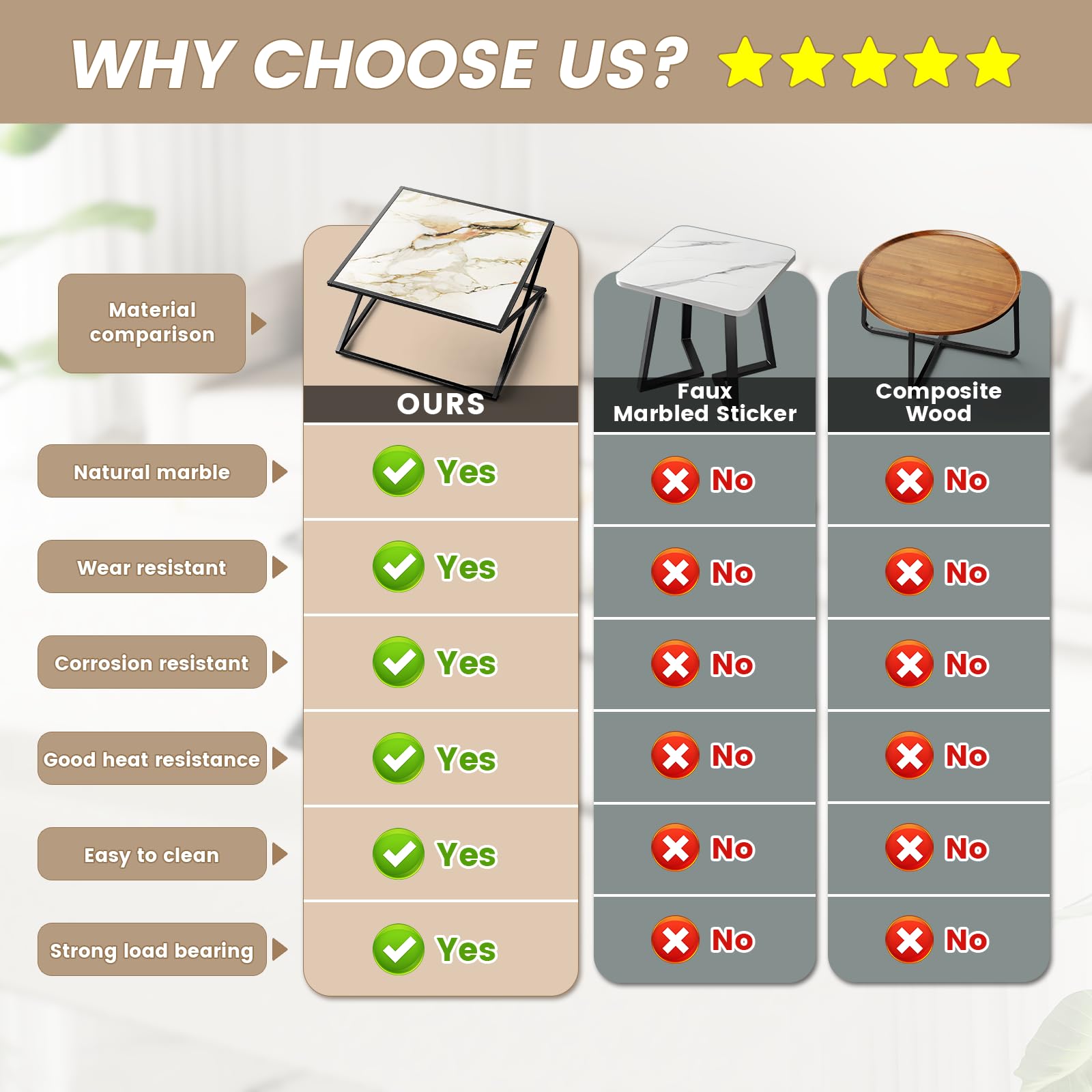 - π₯°[SINTERED STONE MATERIAL] - Compared with traditional faux marble table, our sintered stone coffee table is made of thick and sturdy natural sintered stone with a smooth surface, which are more chemical-resistant, as well as scratch and wear resistant and waterproof. Also, the surface of the modern small coffee table is easy to clean. Simply wipe away spills and stains to restore a flawless appearance.
