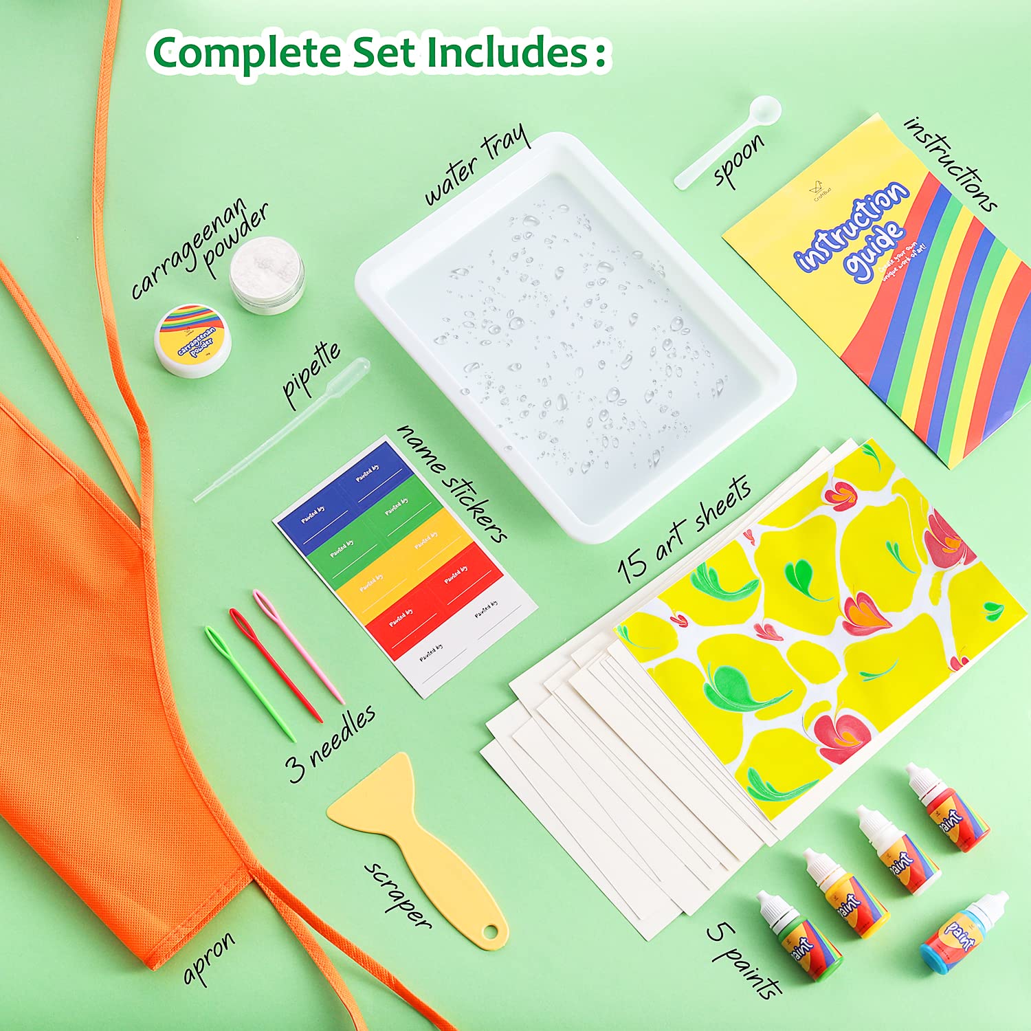 - WATER MARBLING PAINT KIT FOR KIDS: Create one-of-a-kind artwork with this compelling art project. Drip colorful paint onto water, layer and swirl to create unique designs, then lift the artwork off the water, transferring it to an art sheet.