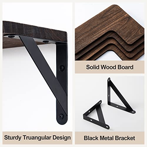 - 【Multi-Purpose Corner Wall Shelves】 Come with 4 pieces of thick L-shaped wood shelves which size is 16 x 11.4 x 0.6 inch, and 8 pieces of strong triangular powder-coated metal brackets. The country rustic wood finishing, curve design for board and matte finish metal bracket, stylish and modern without losing the rustic retroelements, which will be a great home decorations addition to your wall.