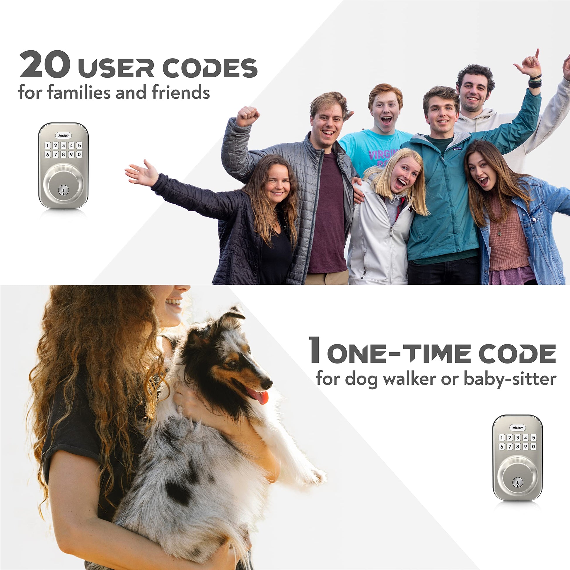 - 【Smart and Easy to Use】A total of 20 user codes with 4-10digits can be programmed, is convenient for your friends and family. This keypad lock also can program one temporary one-time user code for dog walker, home cleaner and baby-sitter. Reduce the hassle and cost of changing locks and exchanging keys.