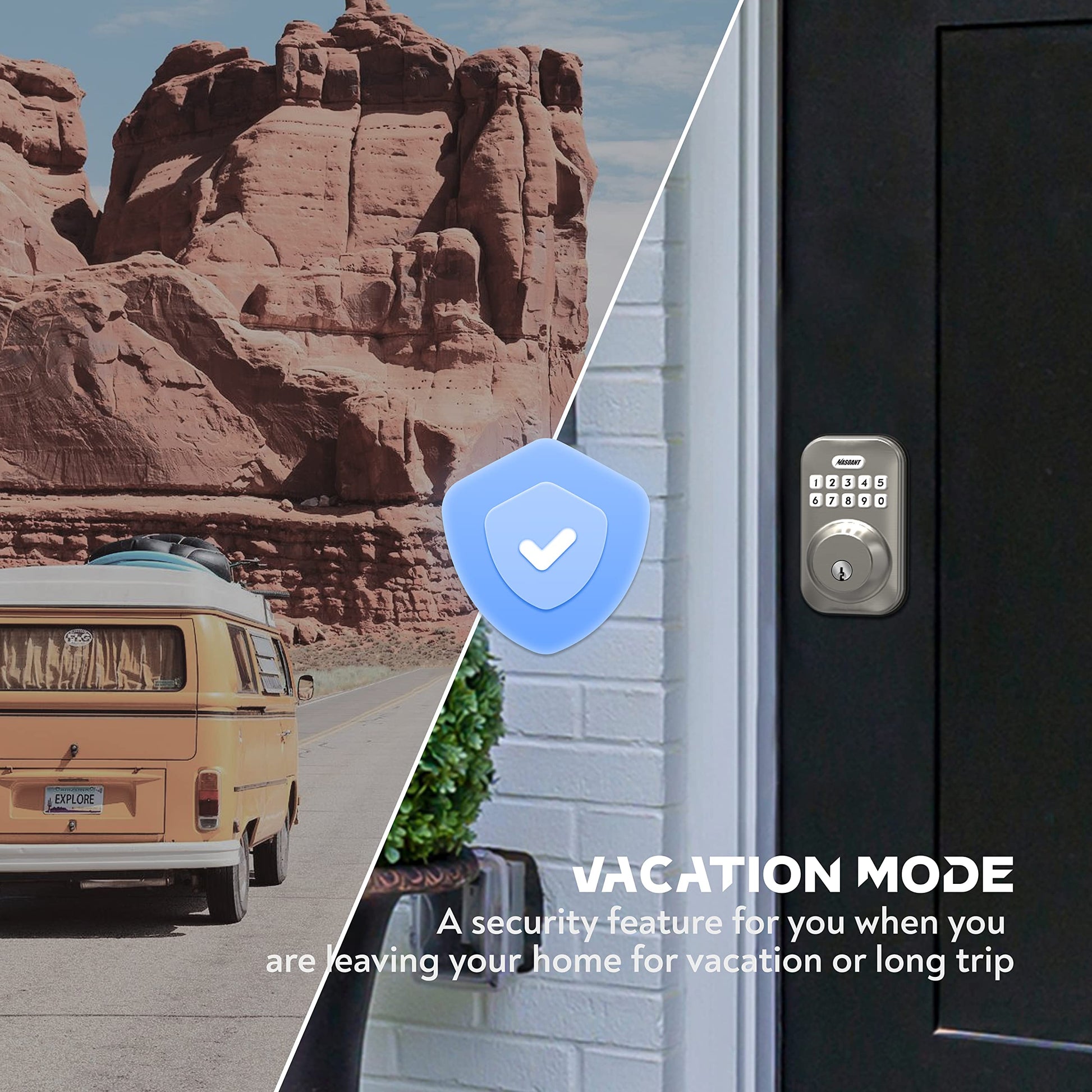 - 【Safe and Versatile】No longer need to remember to close the door, our digital door lock is able to lock automatically. Depending on your needs, you can set your lockout timer to any time between 10 and 99 seconds, or press and hold any keypad for more than 2 seconds to lock the deadbolt automatically. This superior lock has a vacation mode which is a great choice for travel, because it can restrict all user codes until master code is entered on keypad.