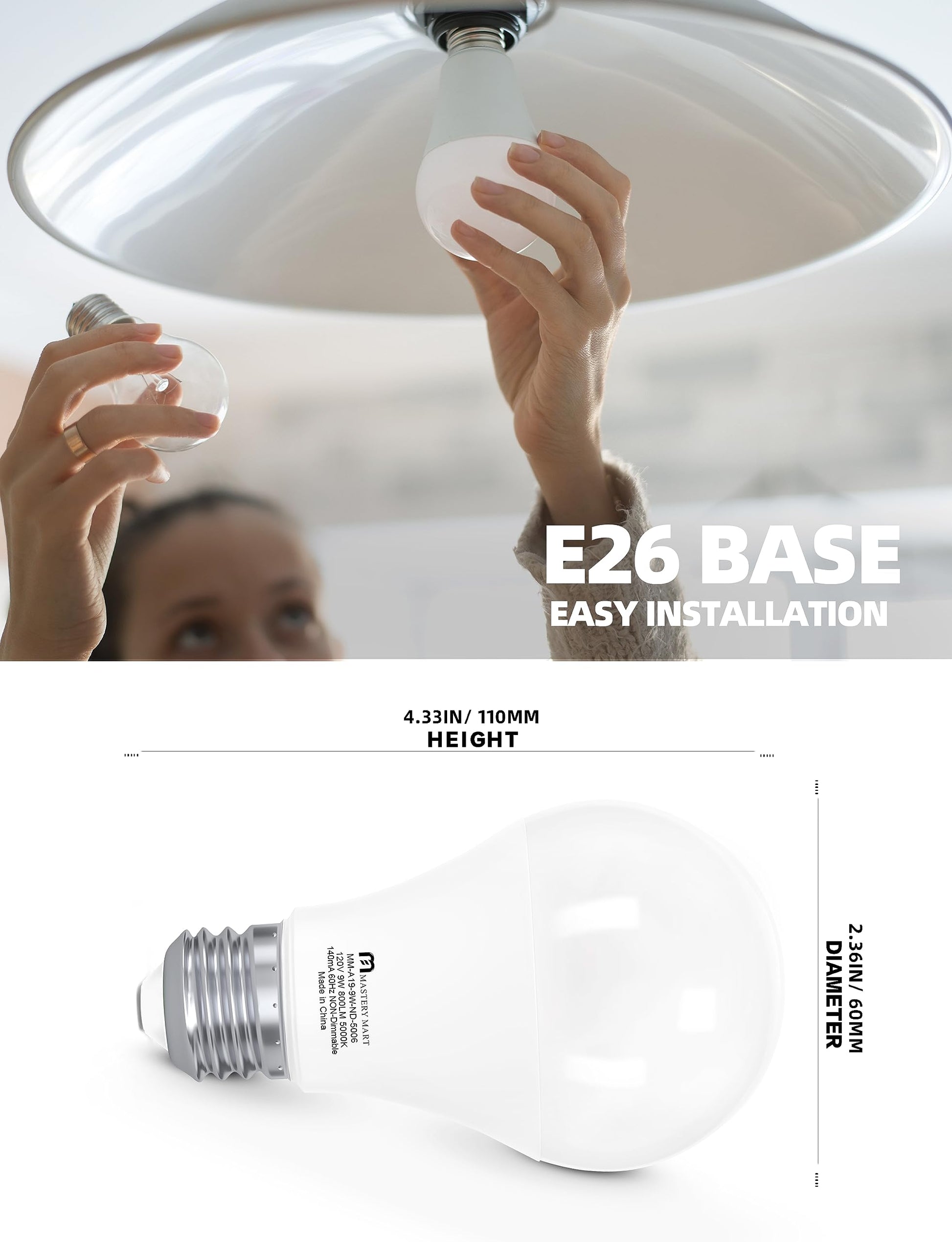MASTERY MART A19 [60-Watt] Led Light Bulbs, E26 Base, 5000K Bright Daylight White, 800 Lumens, CRI 80+, Non-Dimmable, Energy Star, UL Listed, 9W [60W Equivalent]- (6 Pack)