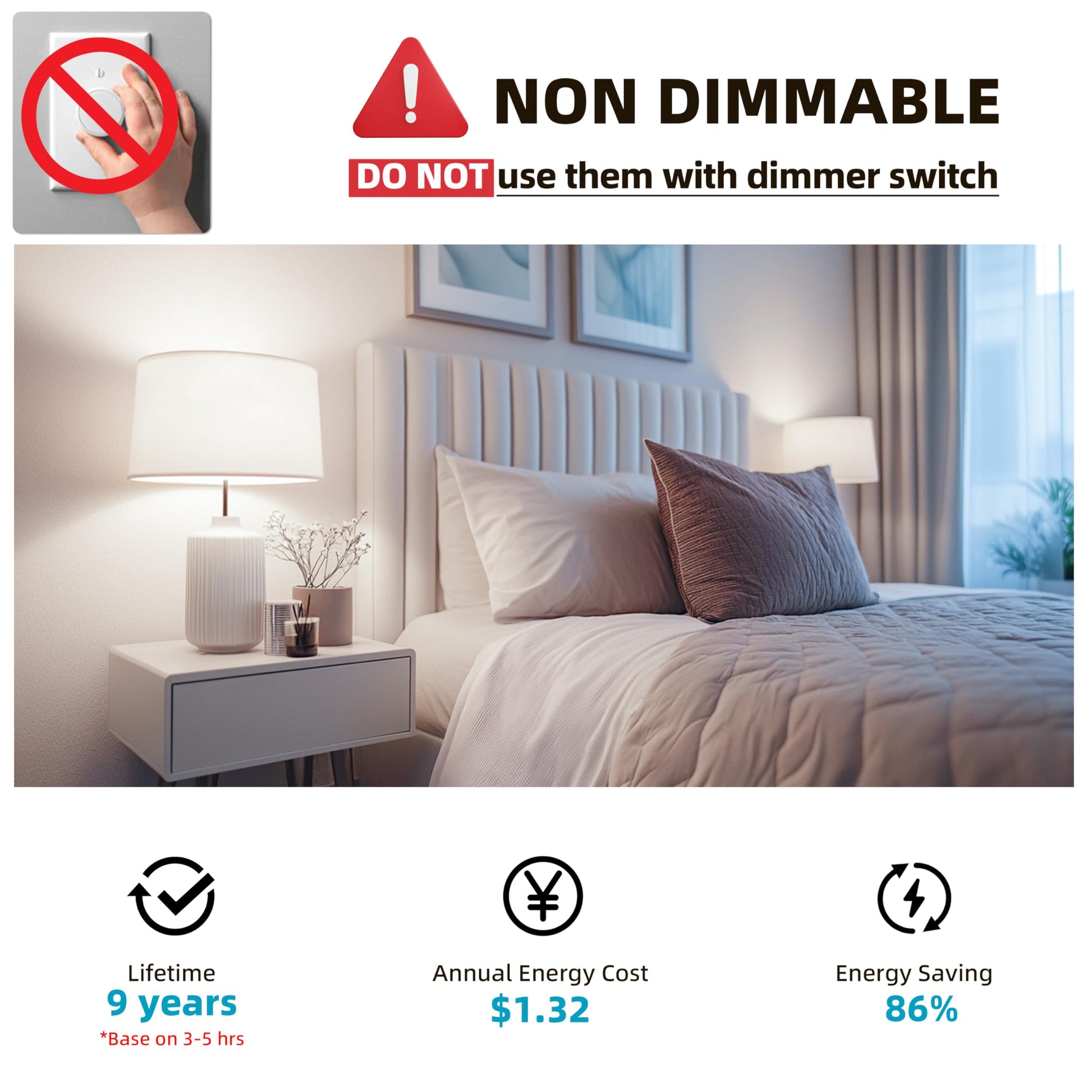 - š”ćSmooth & Non-DimmablećCompatible with a wide range of fixtures. Enjoy consistent and reliable brightness. Warm and cozy 5000K daylight white light adds ambiance to any space. Say goodbye to buzzing, humming, and flickering for a flawless lighting experience.
