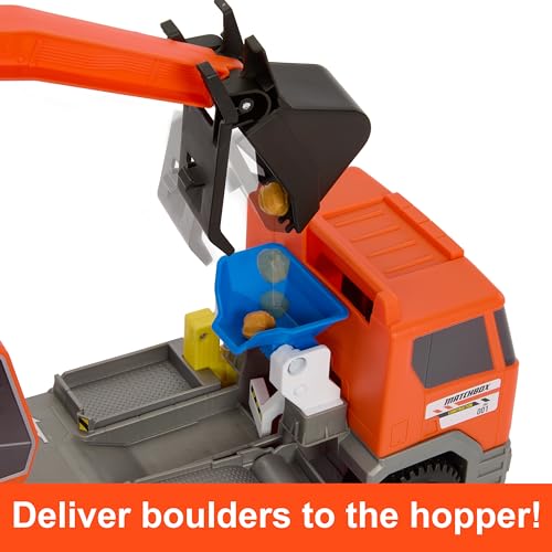 - Kids can dig up exciting adventures with the large-scale Matchbox truck that transforms into an excavation station.