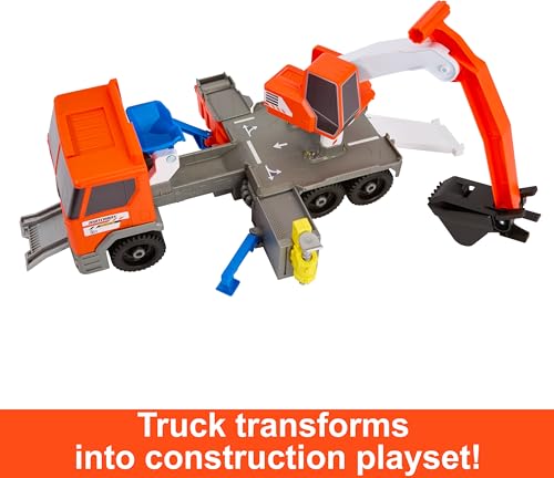 Matchbox Action Drivers Matchbox Transforming Excavator, Large-Scale Toy Truck & Playset with 1:64 Scale Vehicle & 4 Construction-Themed Accessories