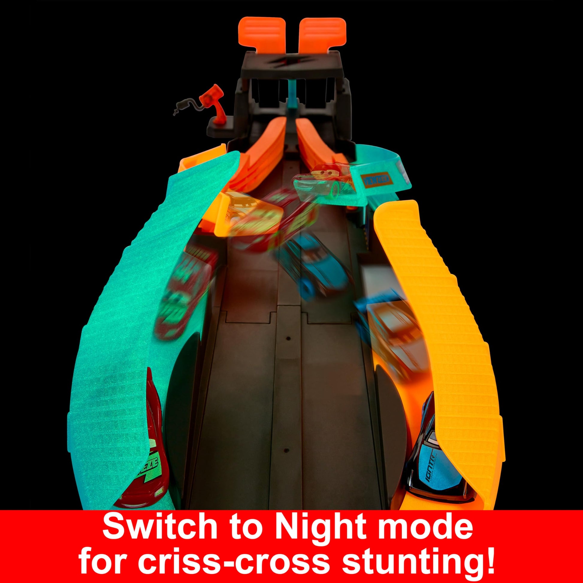 - Ready, set, GLOW with the Disney and Pixar's Cars Launch & Criss-Cross Glow Race Playset!