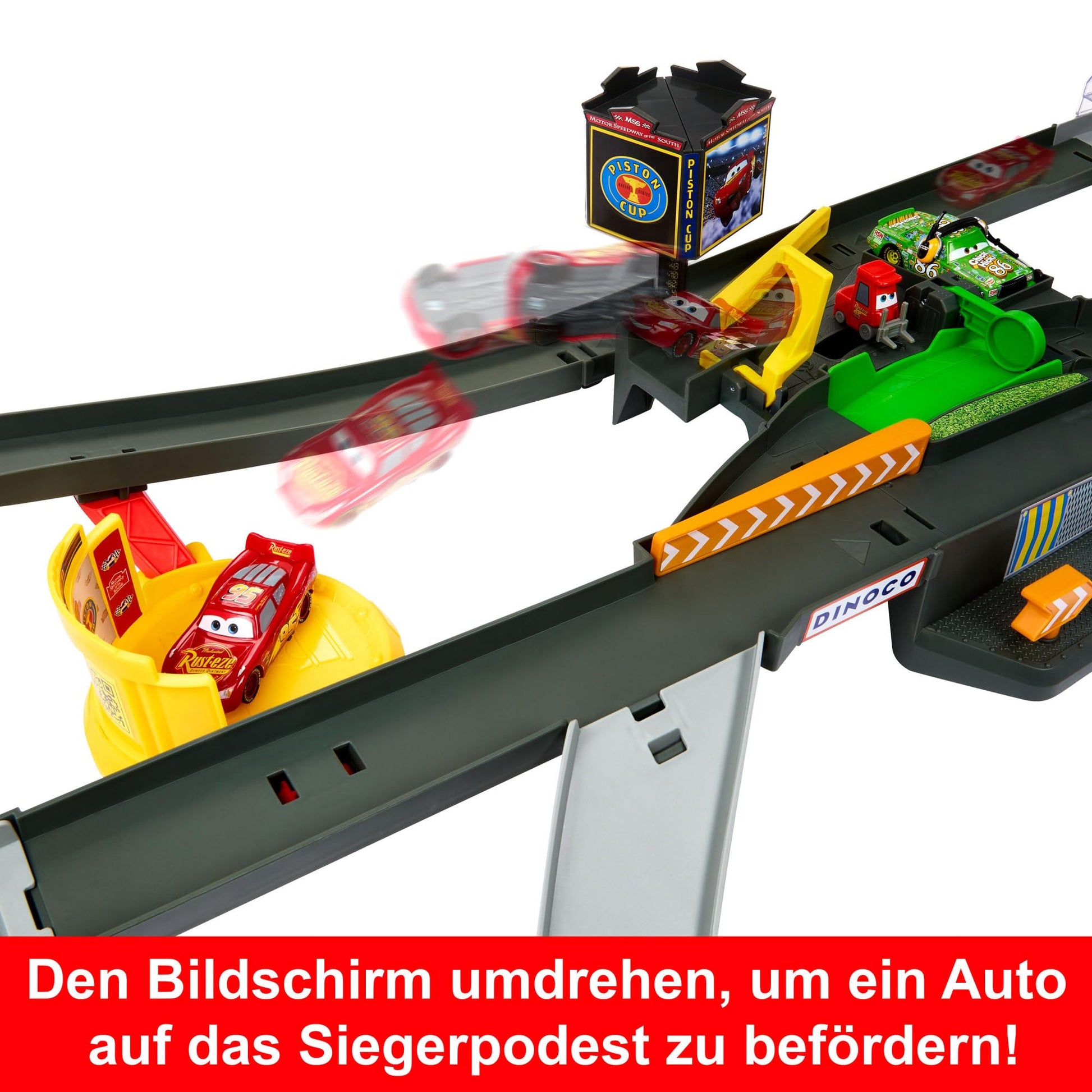 - This interactive Disney and Pixar's Cars Piston Cup Action Speedway Playset lets kids power the race and control the action!