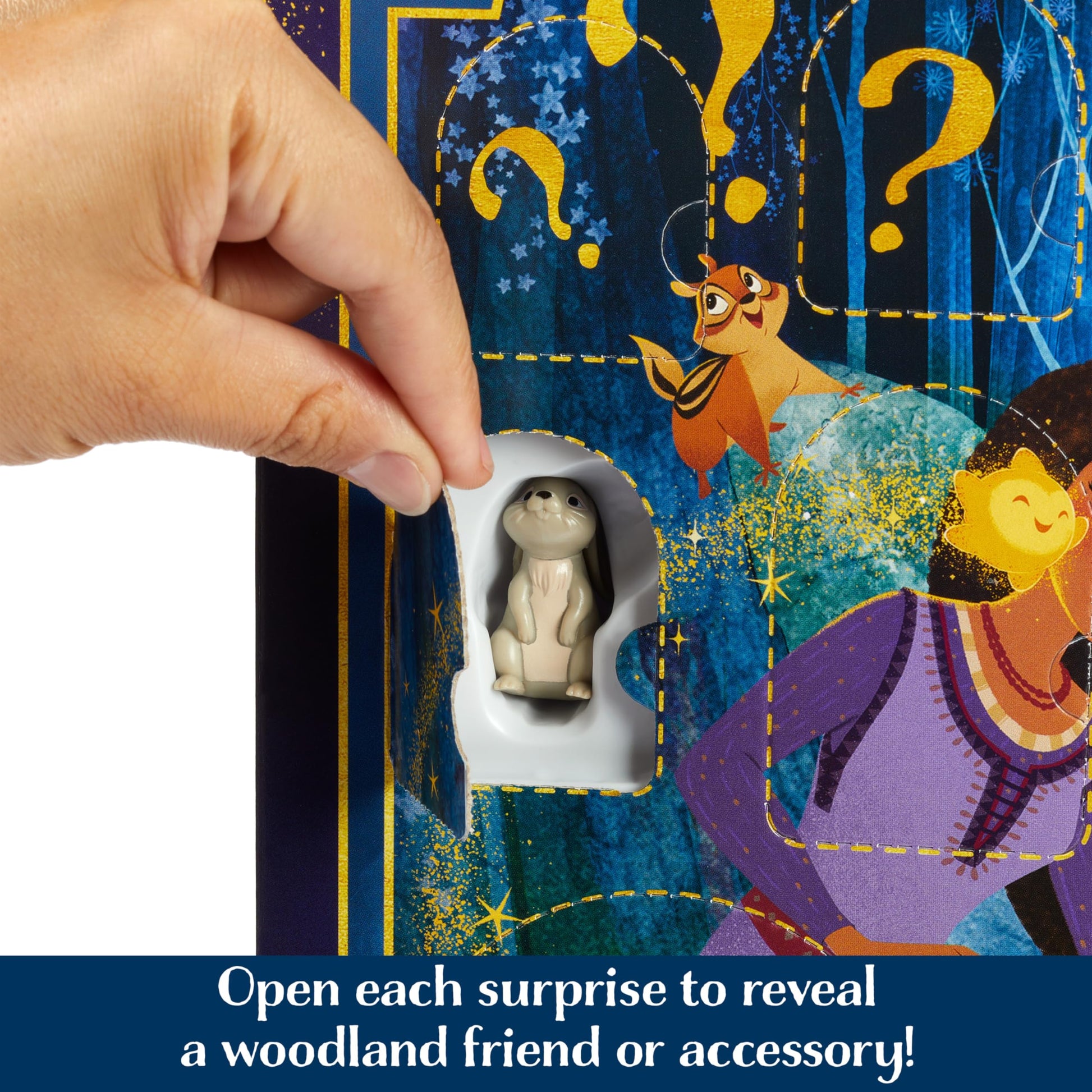 Details: Inspired by Disney's Wish, the Woodland Animals of Rosas Surprise Set brings the magic to life with hidden surprises kids reveal with unboxing! Kids start by discovering the Asha of Rosas fashion doll, featuring her signature removable fashion and long, soft, braided hair. Then, discover six surprises one by one, including different storytelling accessories. Each piece captures the magic and heart from the animated musical and lets fans ages 3 years old and up re-create favorite movie moments. Doll cannot stand alone. Colors and decorations may vary.