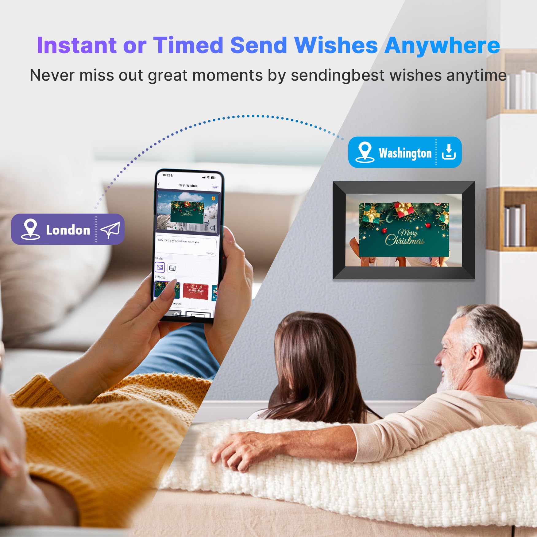 - ăIdeal Gi-ft to Keep Friends and Family Connectedă: Sending a digital photo frame pre-loaded with memorable photos or videos to your friends and family is a heartwarming surprise for anyone! It is the great gi-ft choice for birthdays, graduations, weddings, Christmas, family reunions and many other occasions. Keep your memories close and share them easily with this Smart Digital Picture Frame