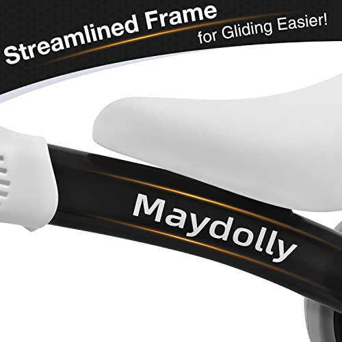 - ✔Sturdy and Comfortable: Maydolly toddler balance bike has a safe carbon steel frame, widened mute PU wheels, suitable for indoor and outdoor riding, the bike body arc design allows the seat to fit the frame, more comfortably for riding on