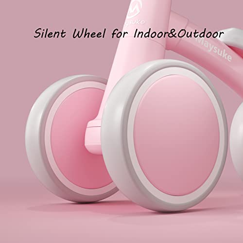 Maysuke Baby Balance Bike Toys for 1 Year Old Boys and Girls Gifts, Toddler Bike 10-24 Month First Birthday Gift with 4 Wheels, No Pedal (Baby Pink)