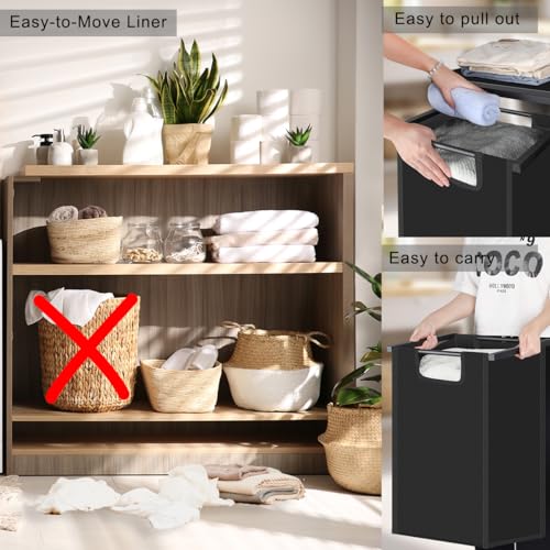 - 【Laundry Basket with Pull-Out and Removable】With our divided laundry hamper's innovative double compartment design, allowing you to effortlessly sort your clothes from light to dark.Each bag also has a built-in bottom panel, providing additional support to against sagging and deformation.