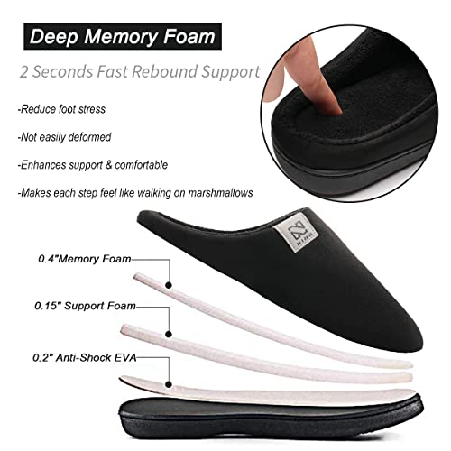 Men's and Women's Classic Memory Foam Slippers Comfort Plush Lining House Shoes for Indoor & Outdoor (Black, 44/45)