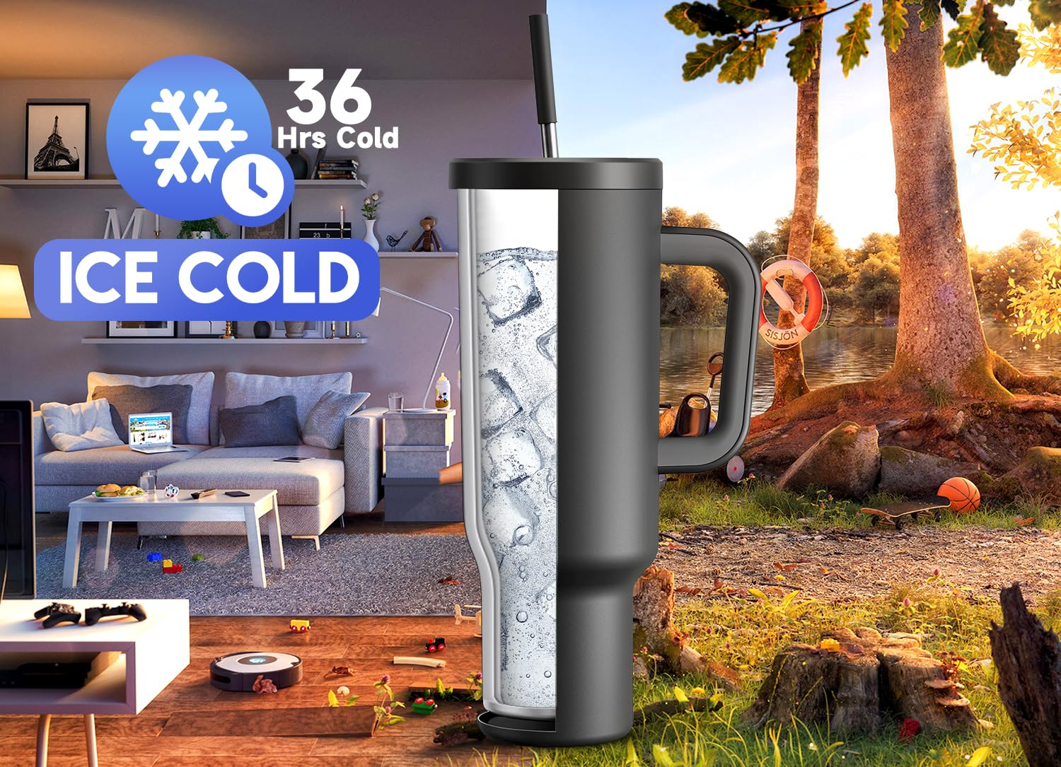 - REFILL LESS. 50 oz tumbler with handle holds much beverages and avoid much walks to the kitchen. RELISH MORE.