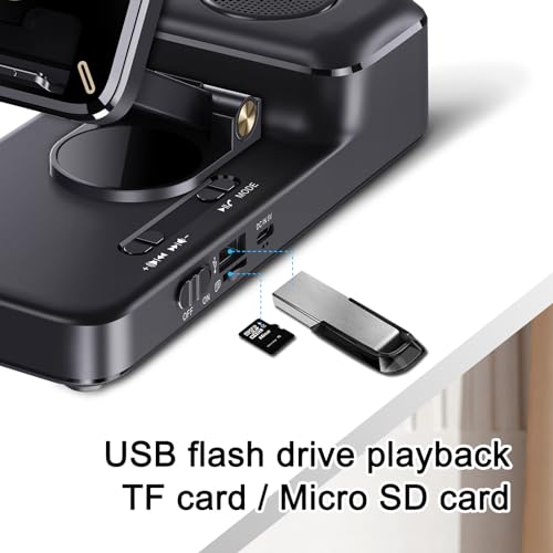 - 4-IN-1 CELL PHONE STAND WITH BLUETOOTH SPEAKER & WIRELESS CHARGING: This versatile device combines a wireless Bluetooth speaker, wireless charging, phone holder, and a built-in microphone. It offers hands-free convenience for video watching and phone calls, along with wireless charging capability while you watch. The upgraded Bluetooth speaker also features a USB output for emergency charging, catering to phones that do not support wireless charging.