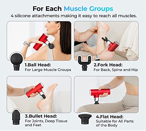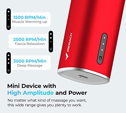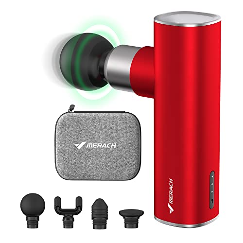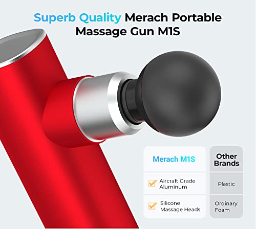 MERACH Mini Massage Gun, Portable Deep Tissue Massager Gun with Aluminum Housing Silicone Massage Heads Handheld Percussion Muscle Massager Gun for Travel Office Gym, M1S, Red