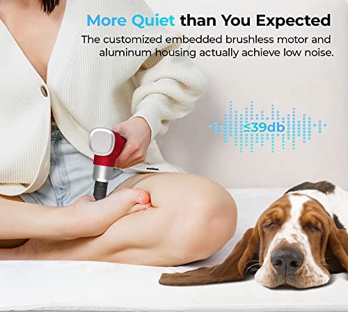 - Super Quiet Deep Muscle Massager: Proud of our engineer's ingenious design: our muscle massager handheld with the high-precision aluminum housing and the customized brushless motor, we can truly achieve a comfortable feel and low noise (lower than 40dB) under high-speed mode. The motor is important, and the brushless motor has a longer service life than the brushed motor.
