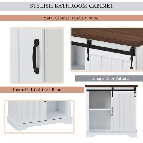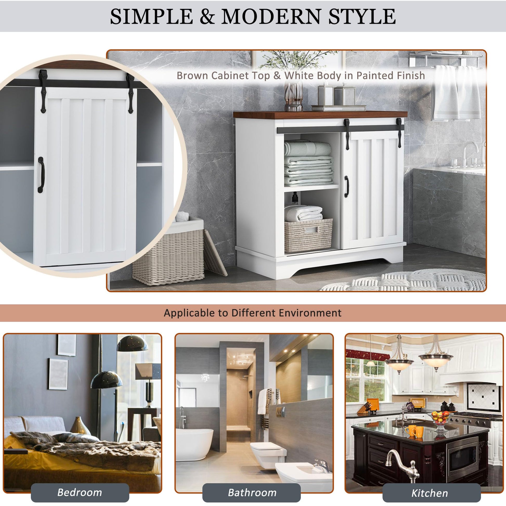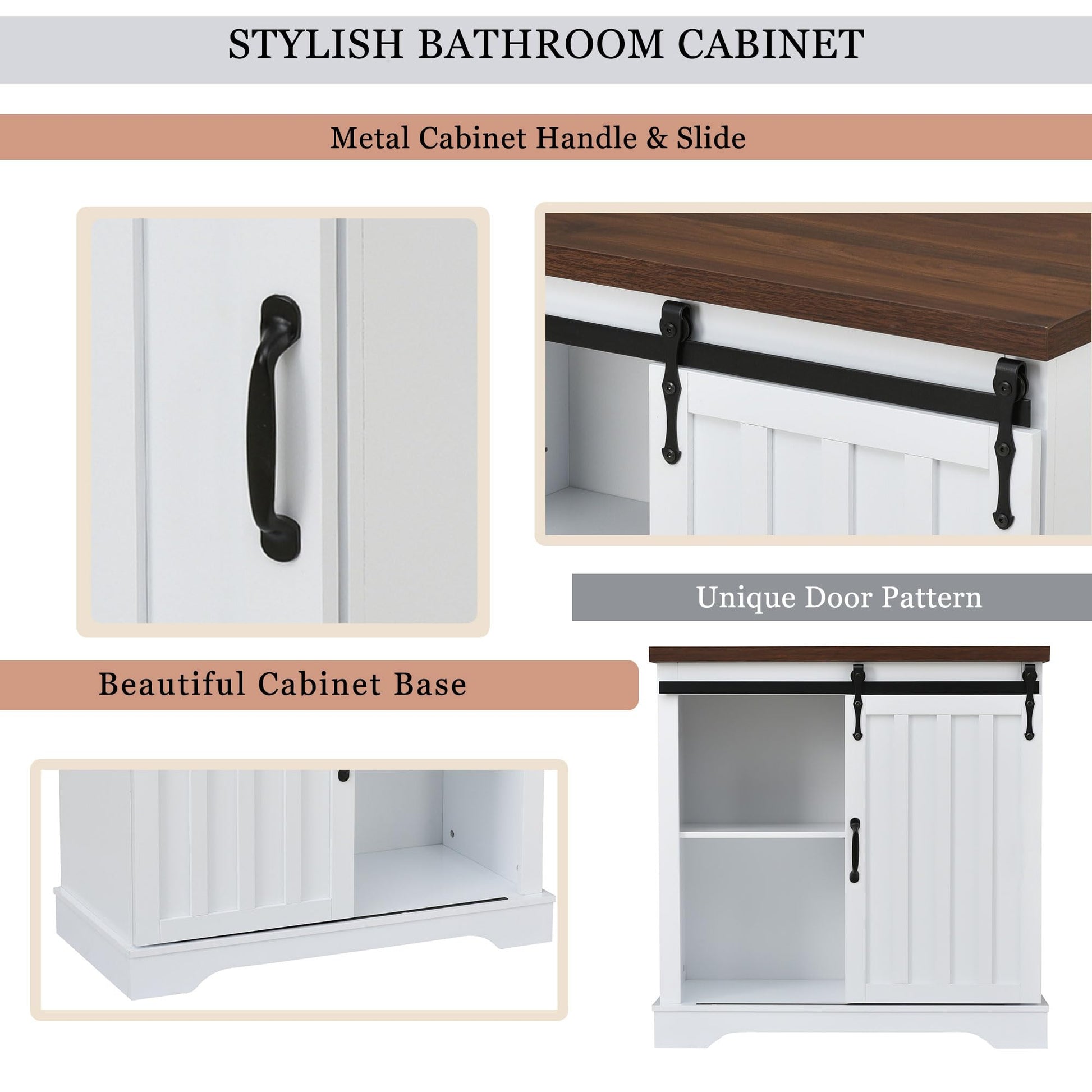 Merax, Brown Bathroom Cabinet with Sliding Barn Door, Farmhouse Accent Storage Cupboard with Adjustable Shelf, 1.18inch Thick MDF Board, White