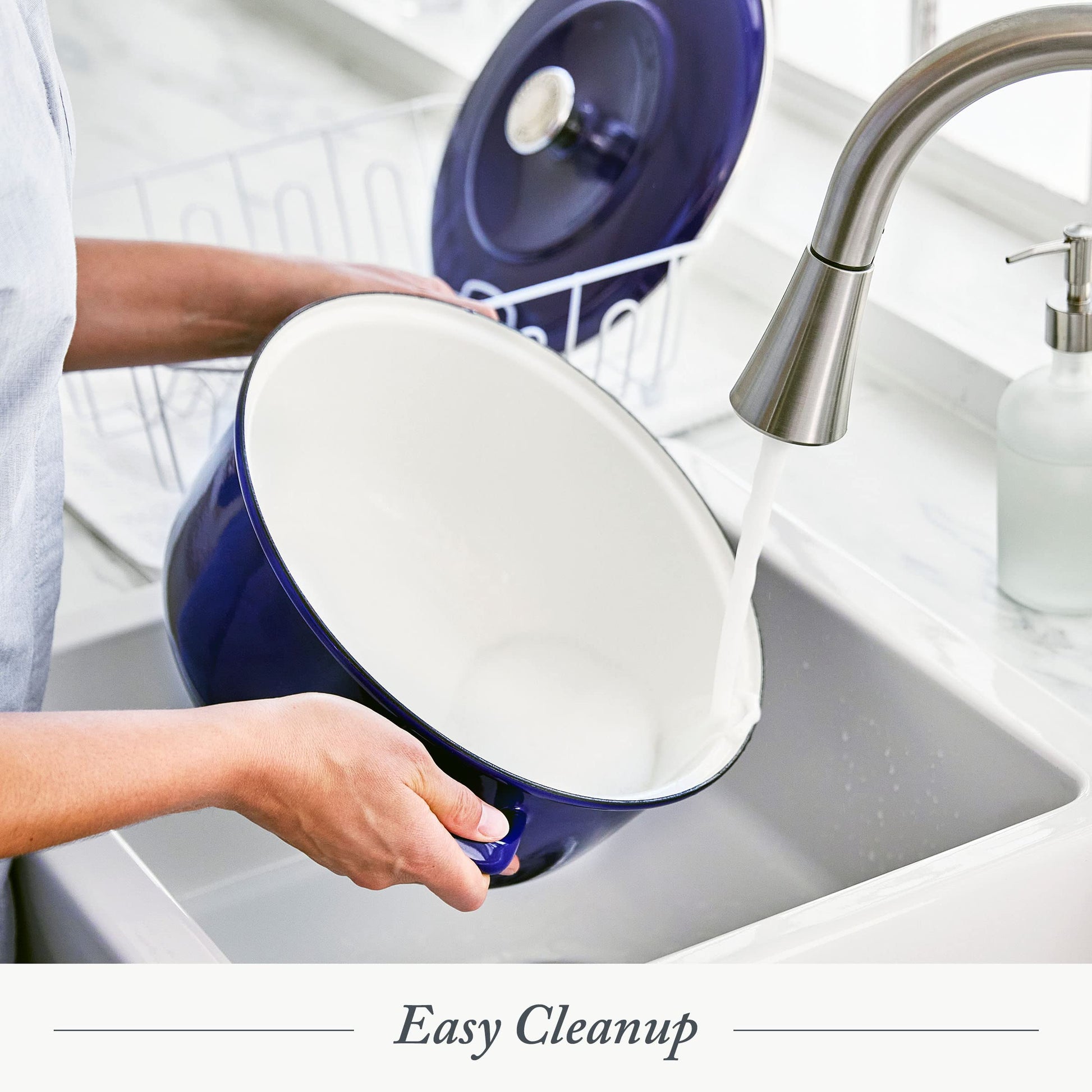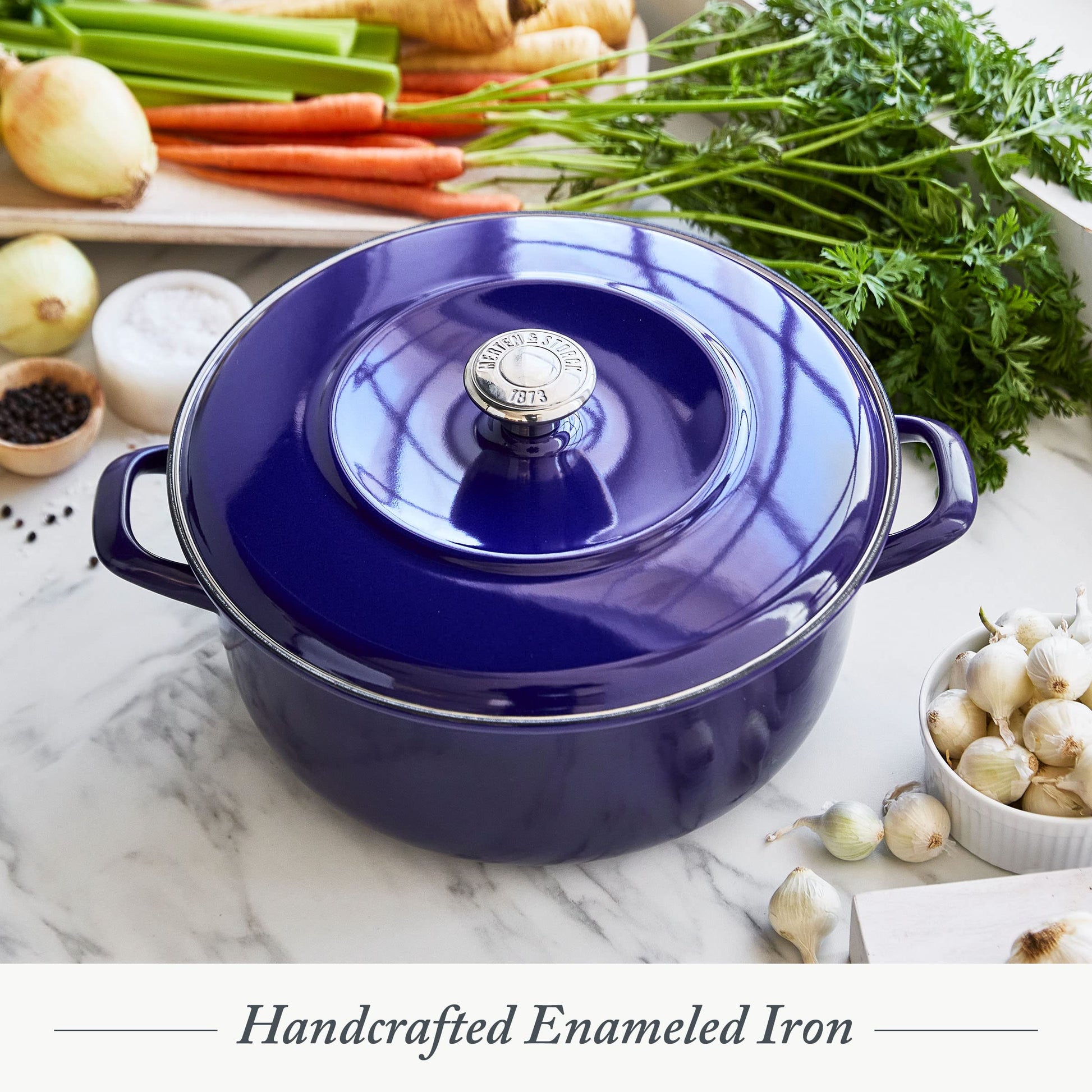 Details: With the 1873 Dutch Oven, you’re in total control. Crafted from our unique German enameled iron, this Dutch oven is 30% lighter, thinner, and less brittle than cast iron. Our German enameled iron heats faster and more evenly than cast iron, which lets you dial in the perfect temperature for any meal. The 1873 Dutch oven is finished with a smooth GlazeGuard surface, which is fused directly to the body and creates a bond that’s more chip-resistant than enameled cast iron. Oven safe up to 600°F. Hand wash only.