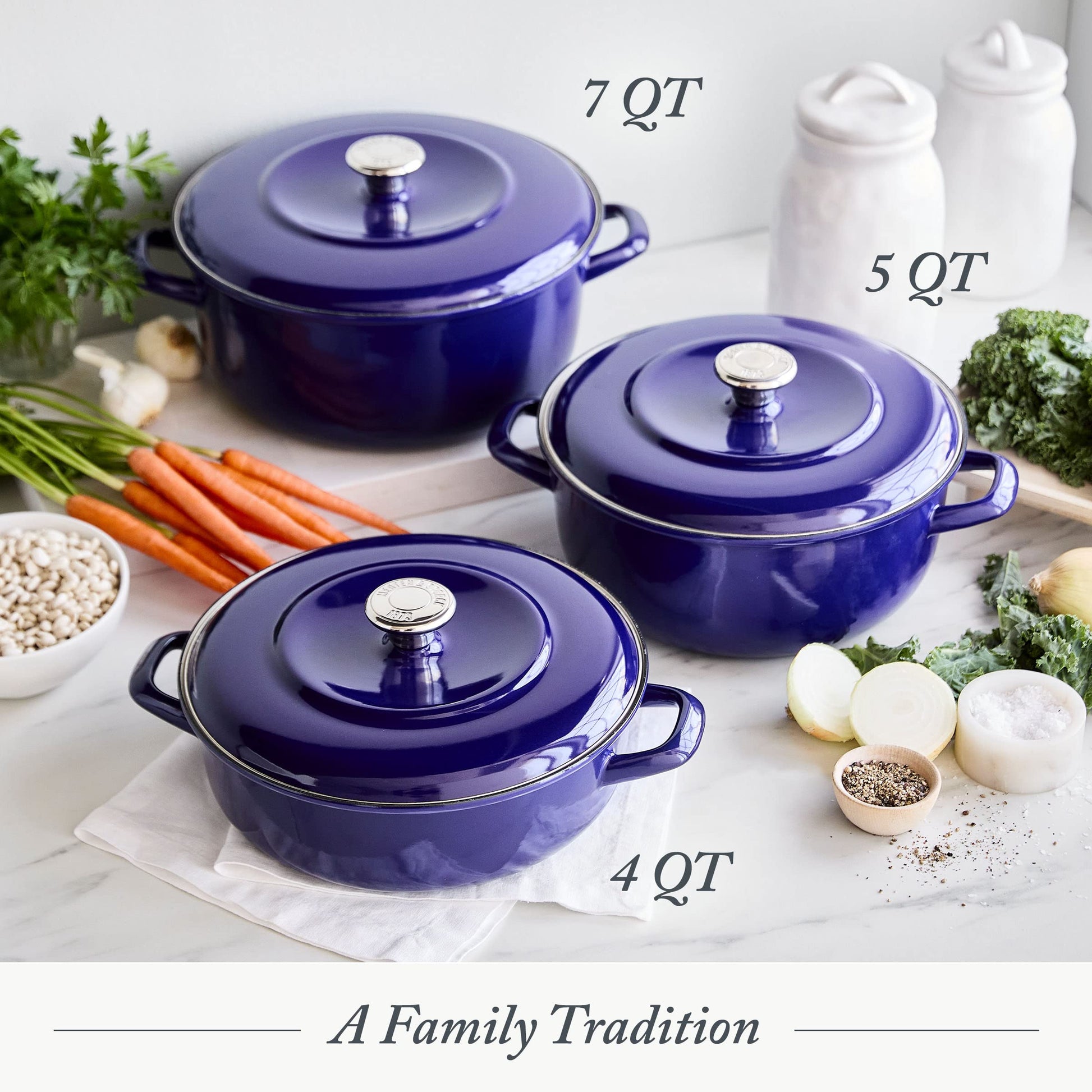 - Crafted from German enameled iron—a thinner and less brittle material than cast iron that heats fast and evenly