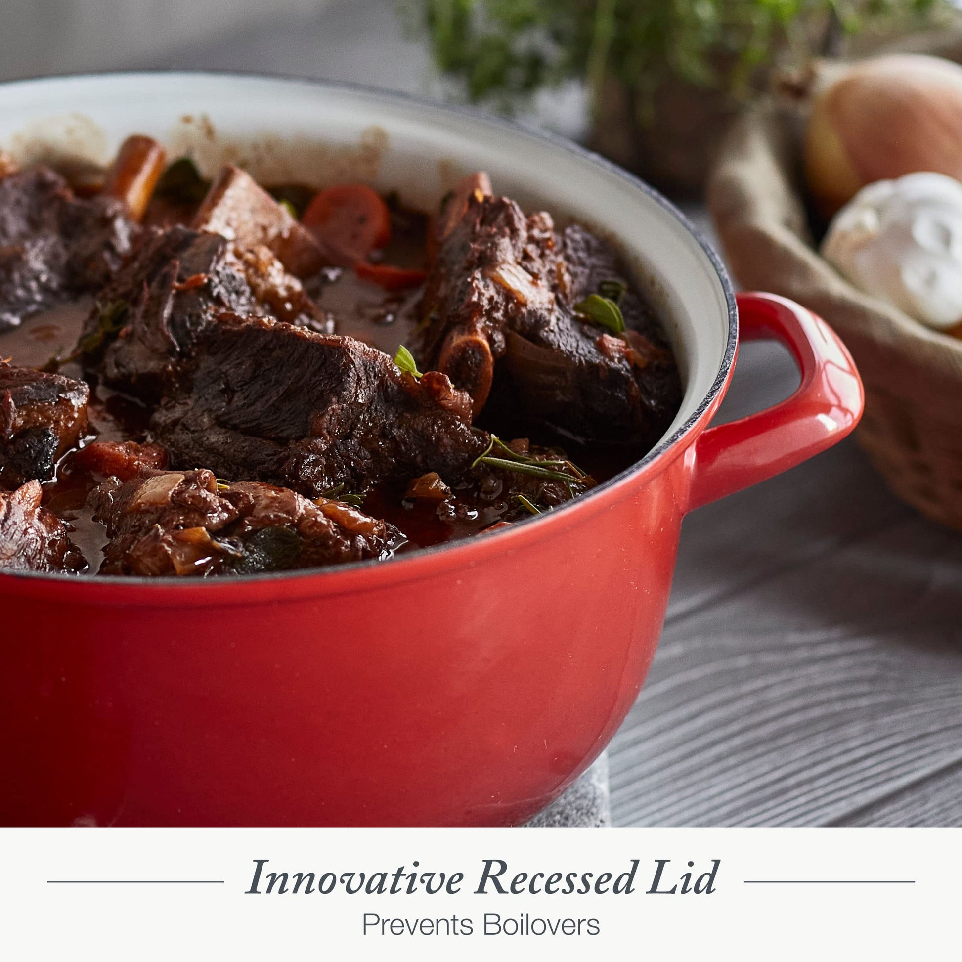Details: With the 1873 Dutch Oven, you’re in total control. Crafted from our unique German enameled iron, this Dutch oven is 30% lighter, thinner, and less brittle than cast iron. Our German enameled iron heats faster and more evenly than cast iron, which lets you dial in the perfect temperature for any meal. The 1873 Dutch oven is finished with a smooth GlazeGuard surface, which is fused directly to the body and creates a bond that’s more chip-resistant than enameled cast iron. Oven safe up to 600°F. Hand wash only.