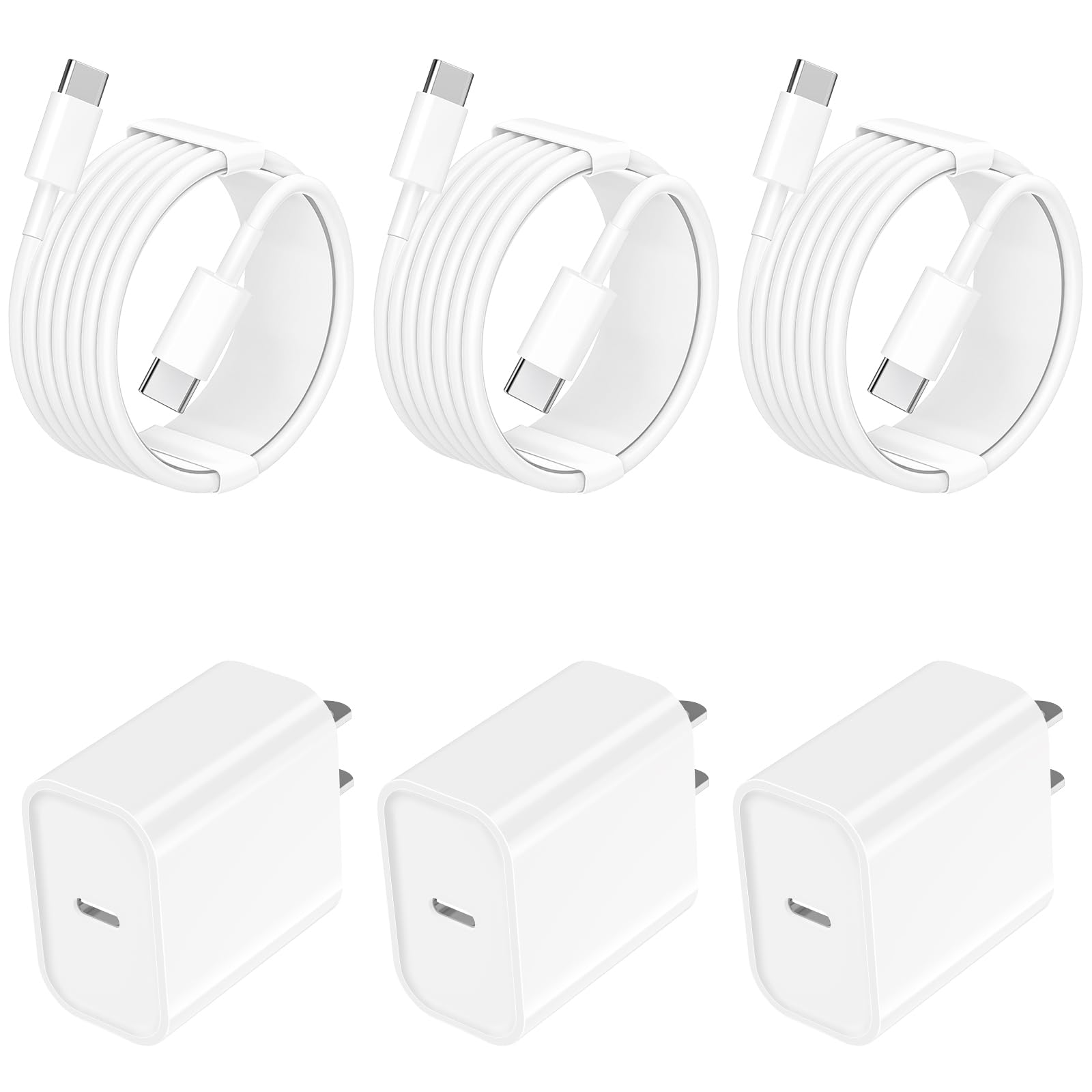 2. MFi Certified 3 * 20W USB-C Power Charger Fast Charging Block + 3 * 10FT Extra Long USB-C to USB-C Charging Cable.