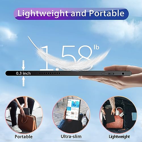 - 【Travel Monitor for Laptop】The Travel Monitor is meticulously crafted from premium aluminum alloy, resulting in a lightweight and durable design. Weighing only 1.58 lbs, and boasting an astonishing thickness of 0.3 inches, this portable usb monitor is intelligently designed to be ultra-thin as travel computer monitor and easily fits into any suitcase or backpack.