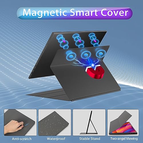 - 【Powerful Smart Cover】 The portable second monitor for laptop boasts the ability to work in both landscape and portrait mode, making it versatile for use as a gaming monitor or as a screen extender for laptops or phones. It comes equipped with a scratch-proof smart cover adorned with a durable PU leather exterior. Not only does the cover provide comprehensive protection for this external portable monitor for laptop, but it also serves as a convenient portable monitor stand.