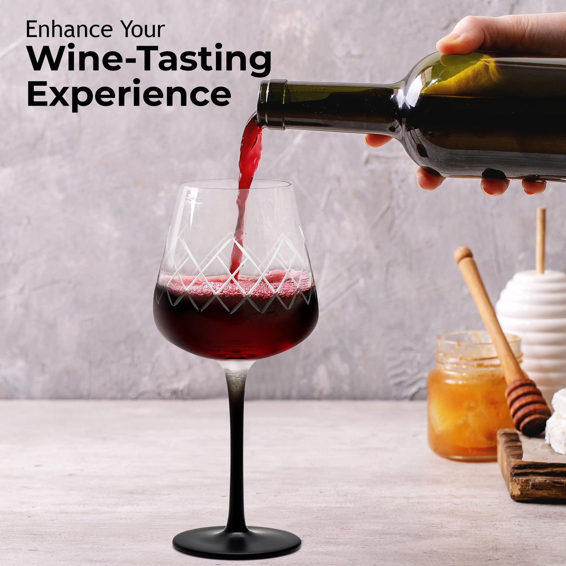MIAMIO β Wine Glasses, Set of 4 Premium Crystal Wine Glasses with Black Long Stem Wine Glasses, Unique Wine Glasses β Crystaluna Collection (Red Wine)