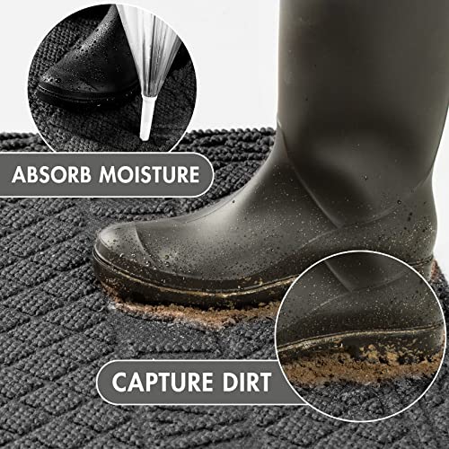 Mibao Durable Door Mat (18"x30",Gray), Welcome Mats Outdoor, Front Door Mats Outdoor Entrance, Outdoor Rubber Mats, Welcome Doormat, Entry Door Mats Outside for Entryway, Patio, High Traffic Areas