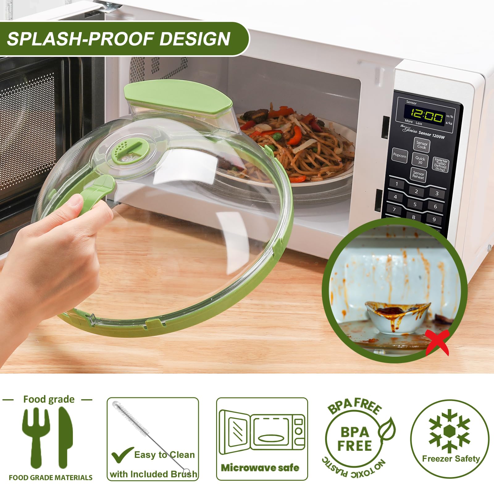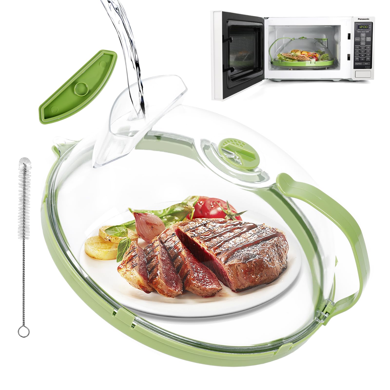 - High-Visibility Polycarbonate - Crafted from clear, long-lasting polycarbonate, this microwave dish cover allows you to keep an eye on your food as it cooks, preventing any overflow or mess. The green diversion ring effectively collects water droplets, keeping your microwave clean.