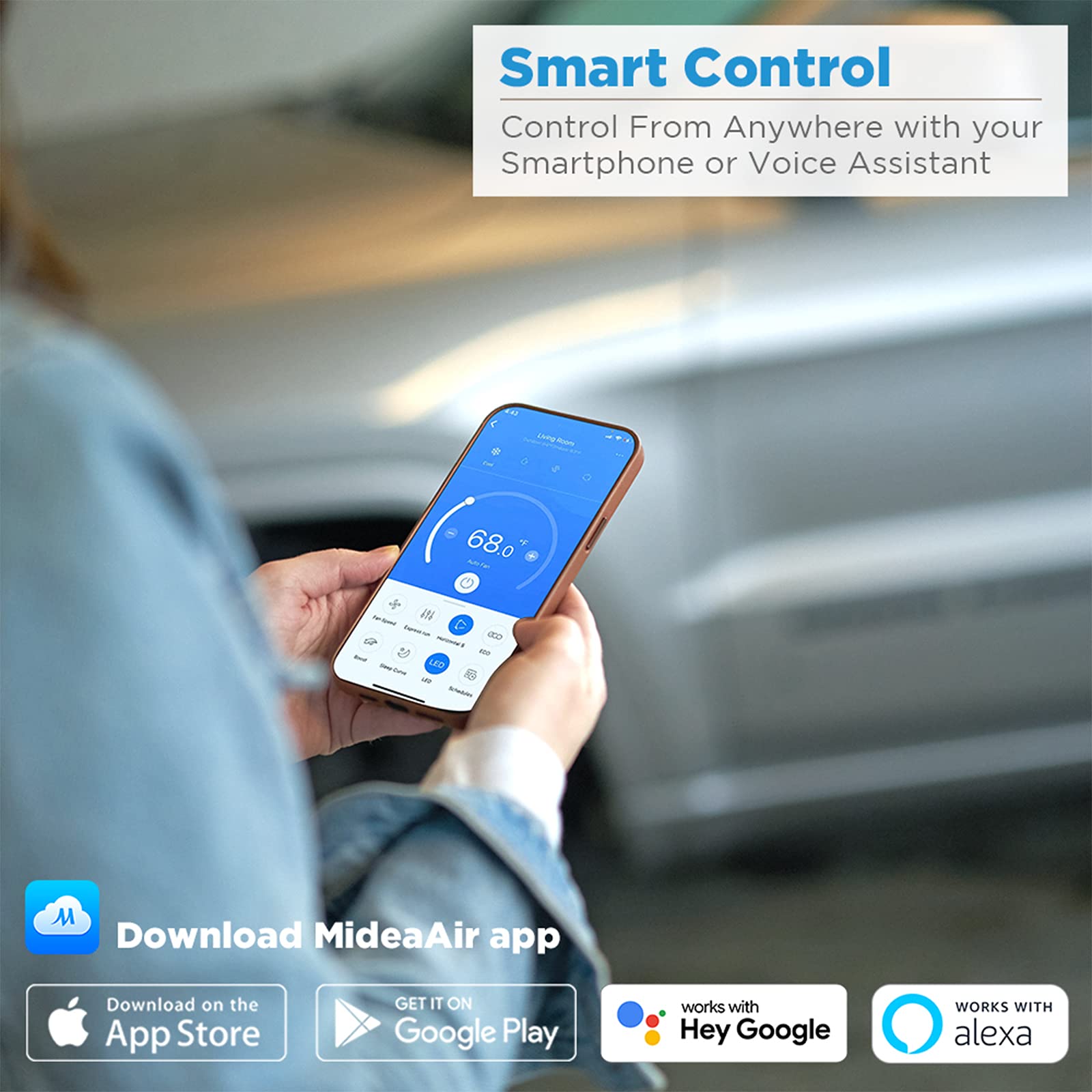 - SMART CONTROL - Control your portable AC from anywhere using the MSmartHome app for iOS and Android. Switch modes, set a schedule, and more. Pair your AC unit with Alexa or Google Assistant devices for voice control options