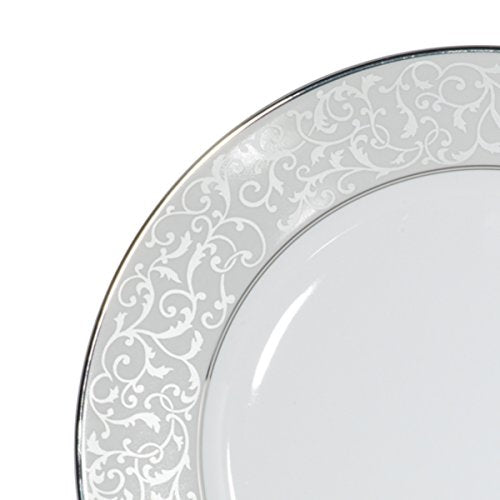 - VERSATILE DESIGN: the beautifully detailed design complements any decor and can be used for formal and casual occasions. Each piece is chic and elegant, accented by inner and outer borders of Platinum.