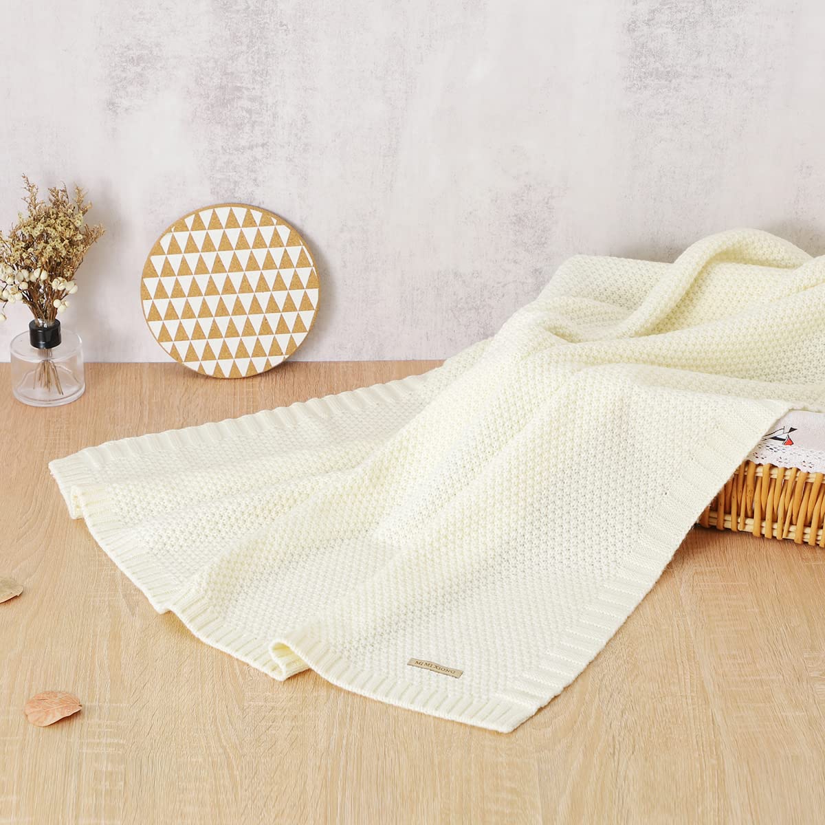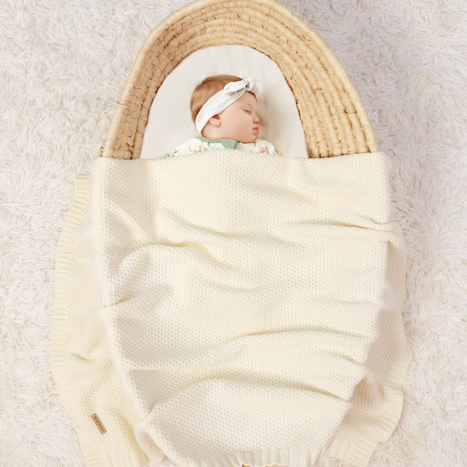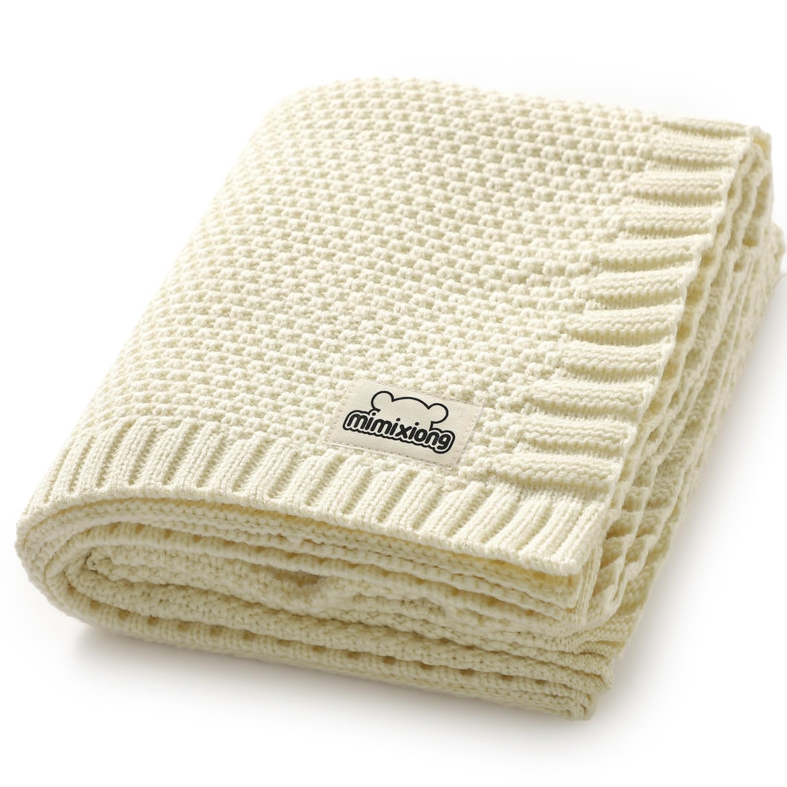 mimixiong Baby Blanket Knit Toddler Blankets for Boys and Girls Ivory 40x30 Inch