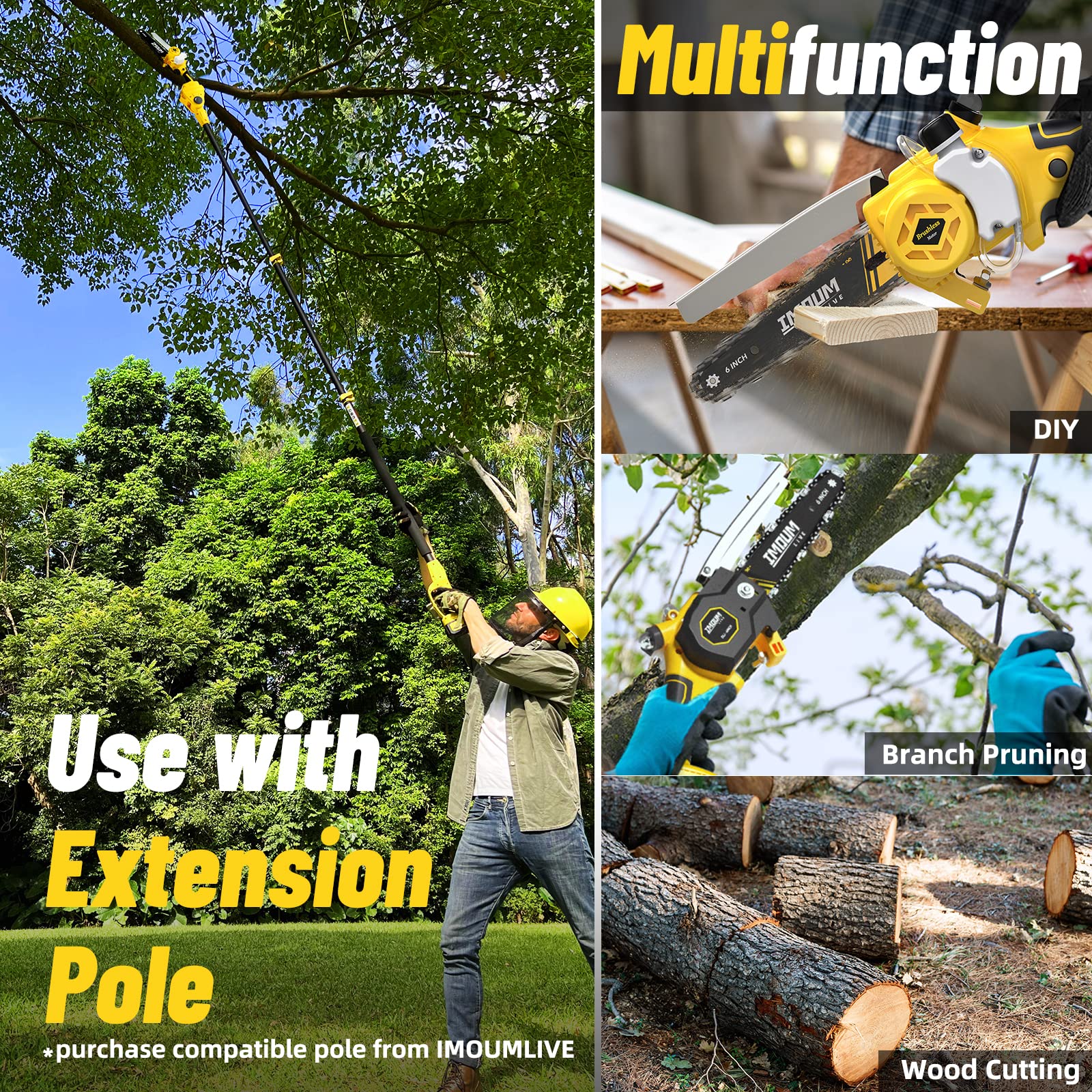 - Multifuntion. Compatible with IMOUMLIVE exclusive extended telescopic pole for easy pruning of tree branches. The small hand chainsaw for cutting wood, pruning twigs, gardening,storm clean-up, etc