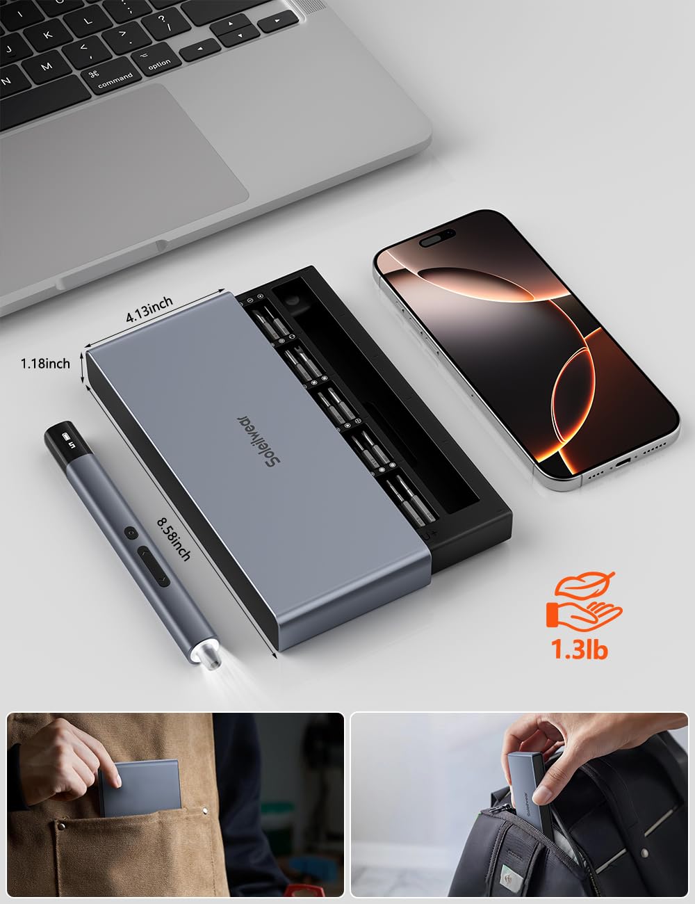 - 【Latest 5 Torque Upgrade & More Powerful】 The Soleilwear mini electric screwdriver features 5 adjustable torque levels** (0.15-0.75N.m), giving you precise control to handle various tasks. The manual torque of 7N.m provides extra power for manual screwdriving when needed.Designed for stability and ease of use, this electric screwdriver cordless is perfect for laptops, smartphones, MacBooks, toys, drones, keyboards, glasses, watches, and most other electronic devices. Save time and effort with a tool built for convenience and efficiency.