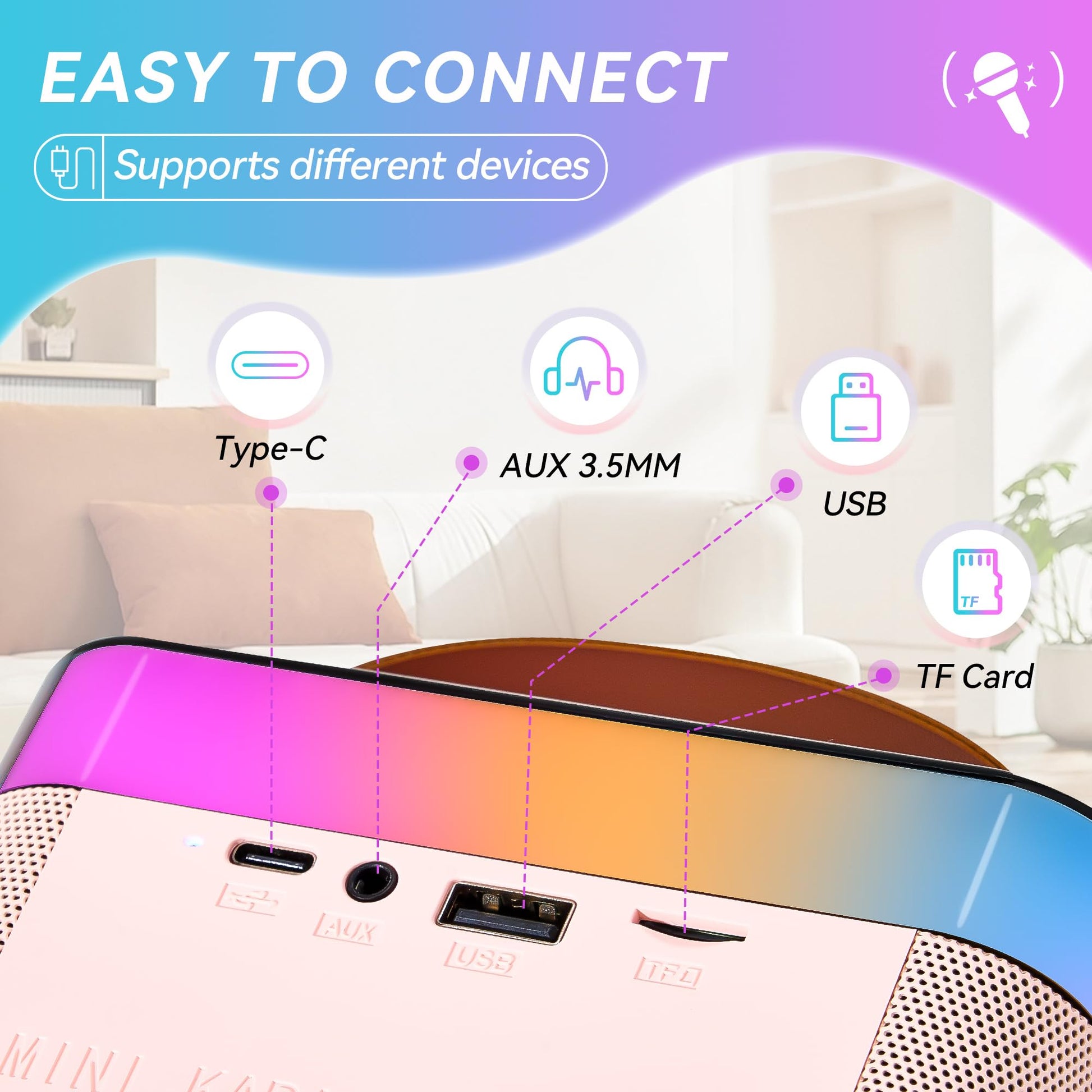 - Stylish and Portable, Perfect for Gifting: Designed with a stylish and portable appearance, our mini karaoke machine is easy to carry and widely applicable, making it a perfect gift for boys and girls aged 4-12 and above. Whether it's for home gatherings or outdoor activities, it's the ideal choice