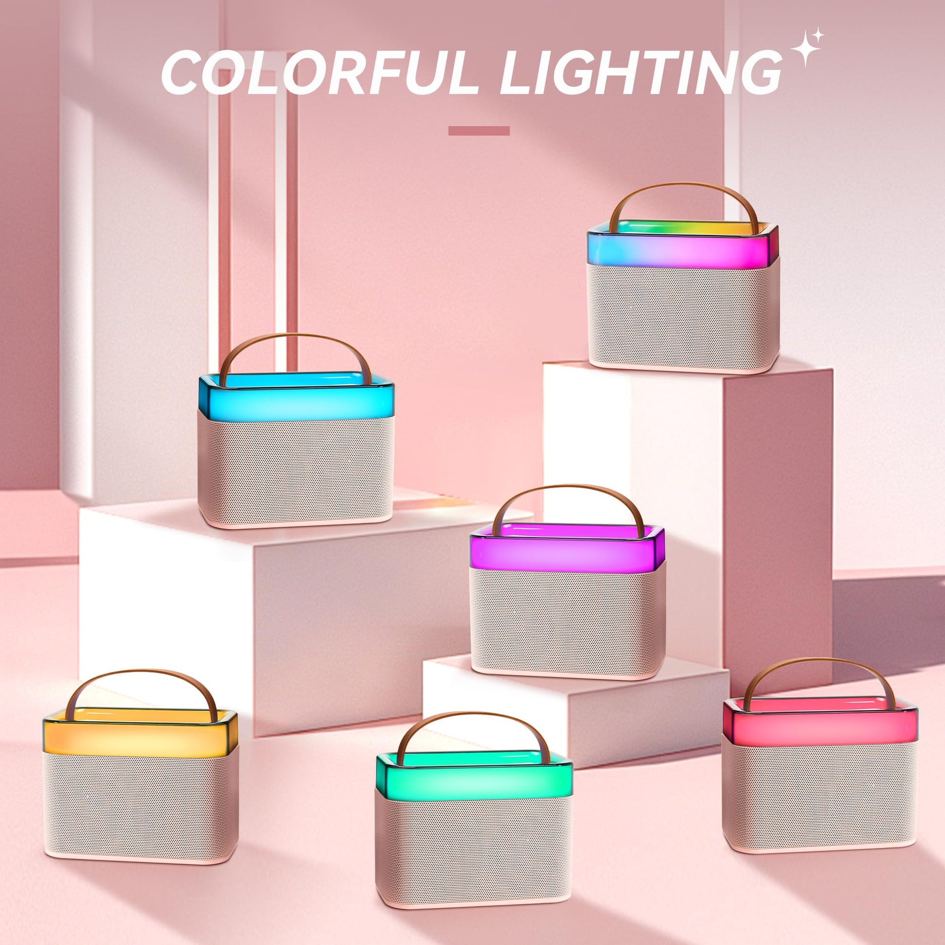 Details: Our mini karaoke machine boasts a combination of exceptional features that elevate your singing experience to new heights. Equipped with high-quality audio processing technology, it ensures crystal clear vocals and an immersive musical journey, replicating the thrill of a live performance. Five dynamic light designs sync seamlessly with the music, creating a visually captivating atmosphere, while versatile sound effects ranging from professional modes to playful voice transformations add a touch of fun and uniqueness to every performance. Seamless Bluetooth connectivity allows for easy pairing with various devices, ensuring music enjoyment anytime, anywhere. A long-lasting built-in battery guarantees up to 12 hours of non-stop fun, making it perfect for all occasions. Stylish, portable, and versatile, this mini karaoke machine is an ideal gift for children and adults alike, offering endless entertainment for home gatherings, outdoor adventures, and more. Remember to avoid placing the microphone too close to the speaker to prevent any unintended sound distortions