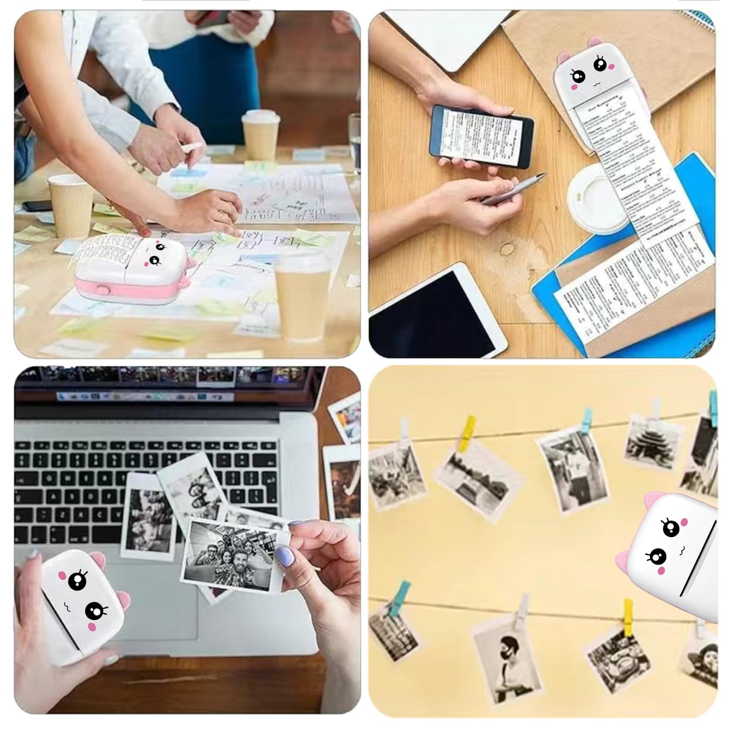 - đăCreative GiftăThis printer has a cute look and a small size, specially designed for kids. It also compatible with iOS and Android and can print photos, study notes, to-do lists, DIY stickers, storage labels, memo and more. It's practical and fun to use as a gift for friends, family and children.