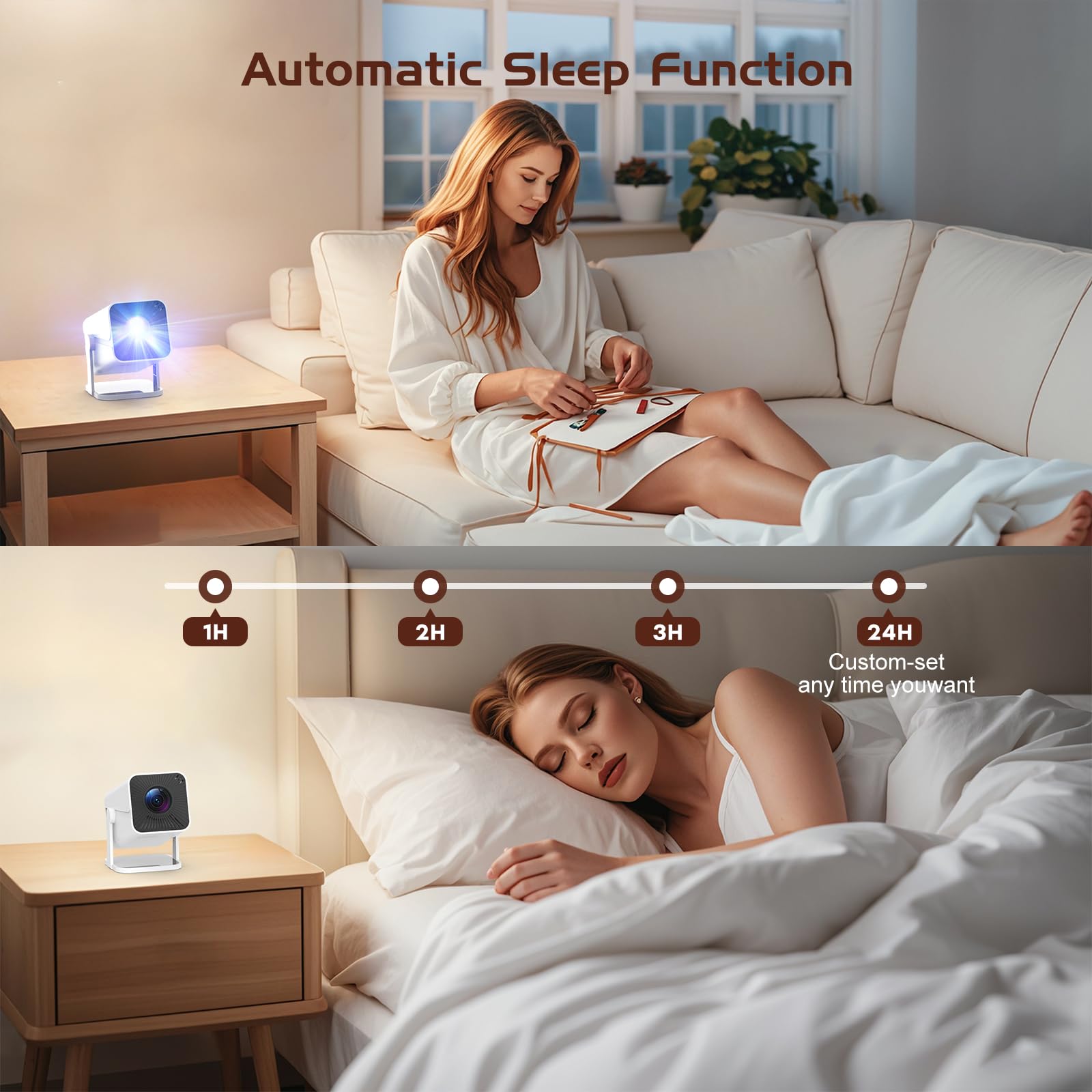 - 【270°Rotatable Integrated Stand 】No More Angle Restrictions! This mini projector features a 270°rotating integrated stand, allowing you to project from any angle—be it the wall, ceiling, or table. Enjoy crisp, clear images with no complicated setup and no need for additional stands. Just place it where you need and enjoy the ultimate movie experience on a comfortable sofa or bed!