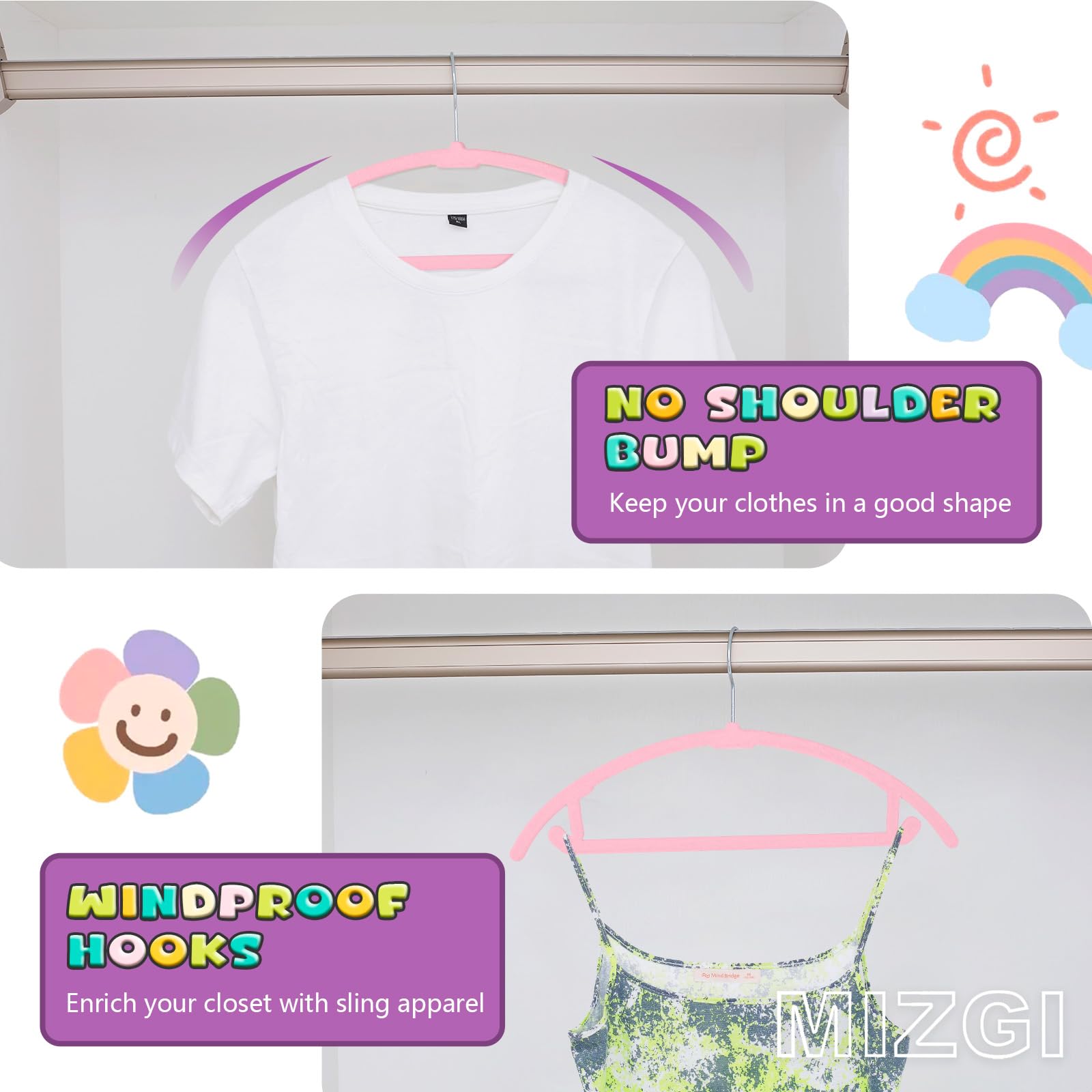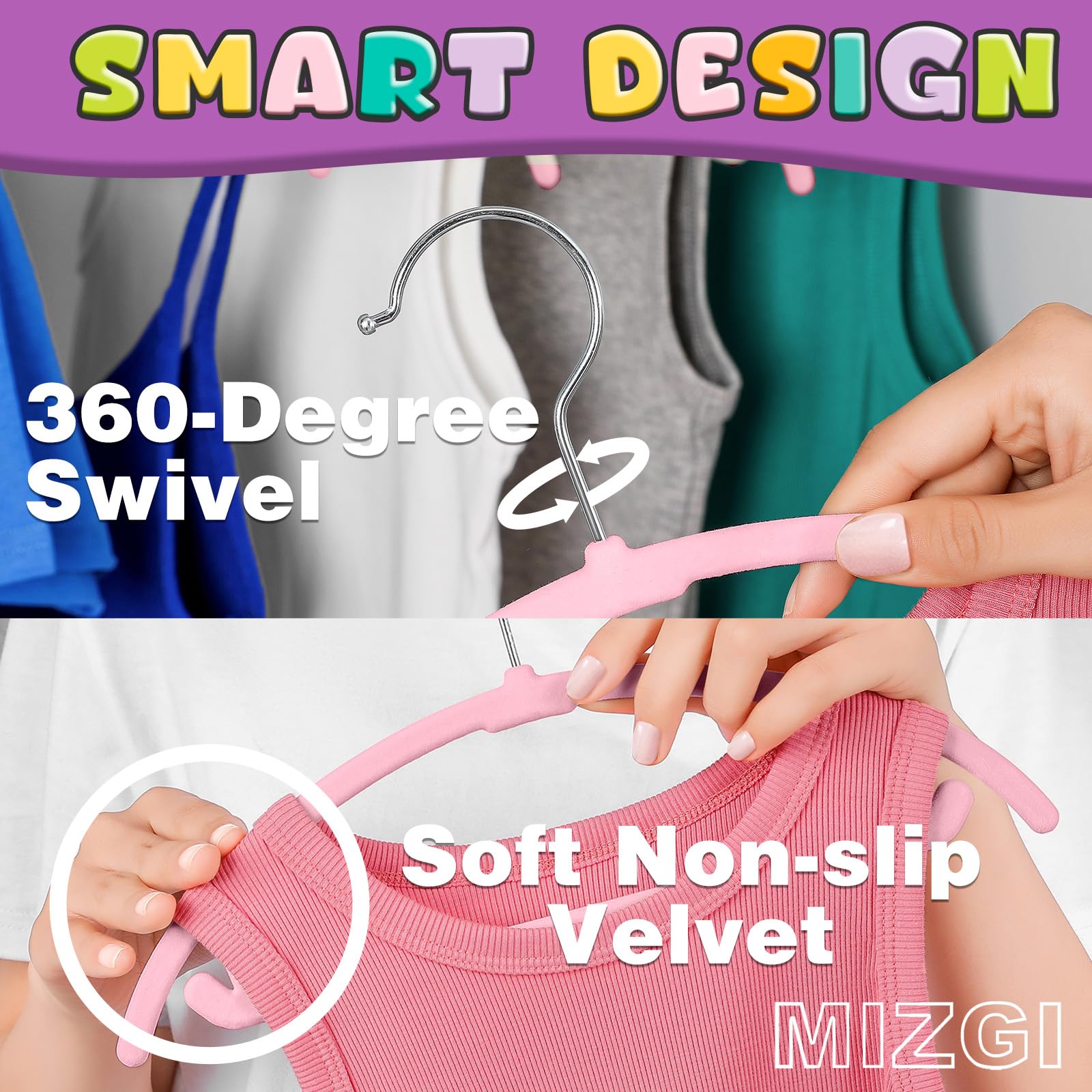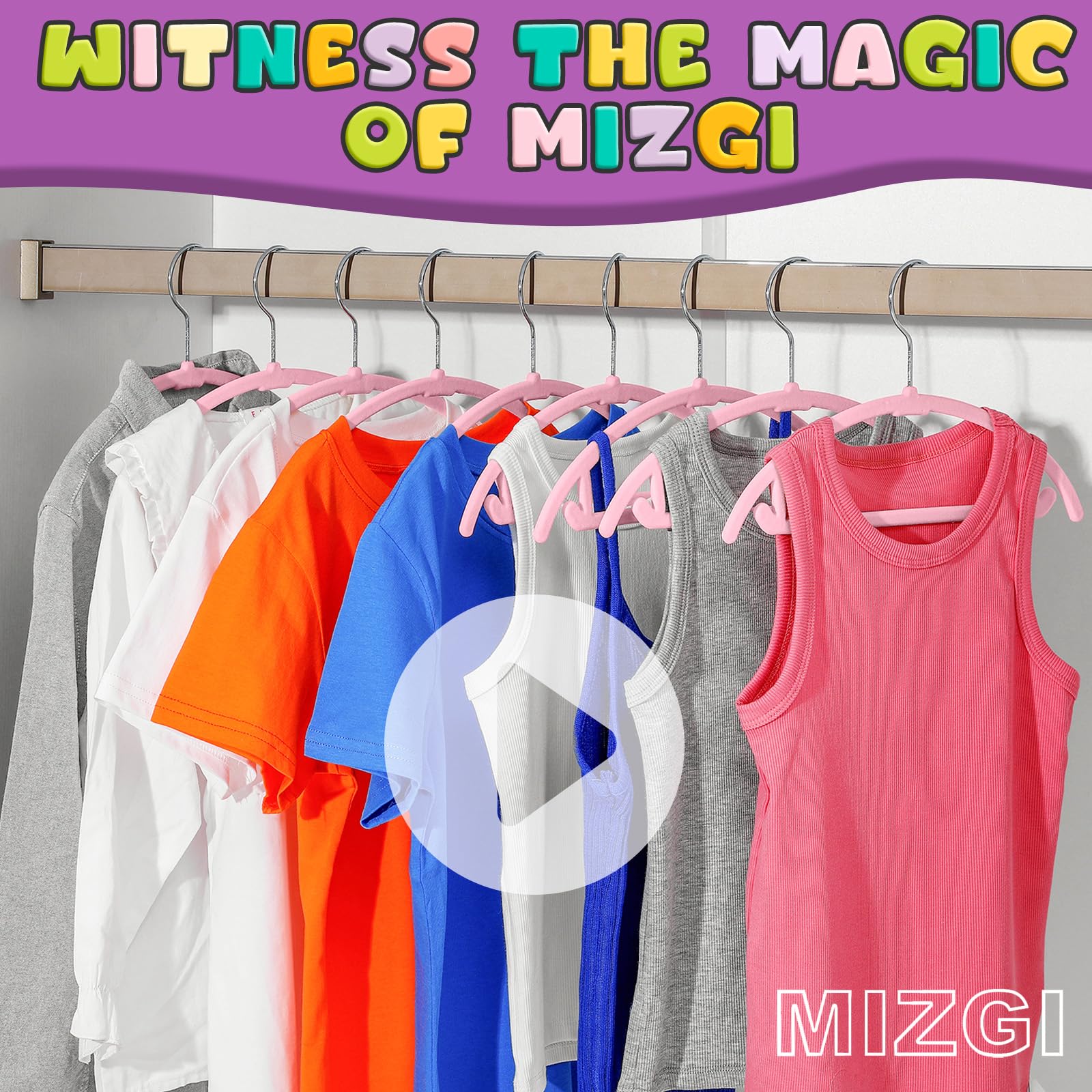 - MAXIMIZE CLOSET SPACE - Designed MIZGI kids hangers Increases Closet space by as much as 50 percent.The slim and sleek design efficiently works, maximizing space and adding class, helping you organize your wardrobe in the most space efficient manner