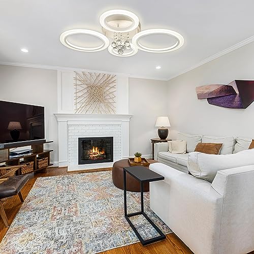 Modern Flush Mount Ceiling Light Fixture 4 Rings Crystal Chandeliers LED Ceiling Lights Dimmable Kitchen Light Fixtures White Bedroom Ceiling Lights for Living Room Hallway Entrance Office 25.8 Inch