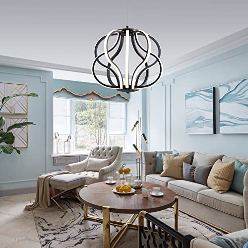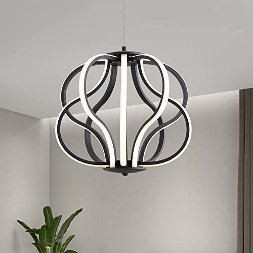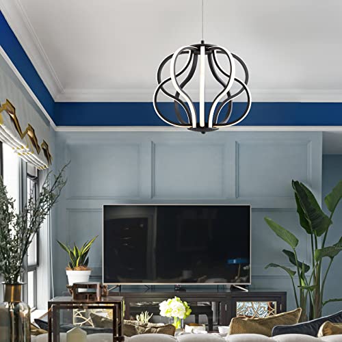 Modern LED Chandelier Black Hanging Pendant Lights, Easy Install Suitable for Dining Room Living Room Bedroom Kitchen and Corridor (10 Light, Black)