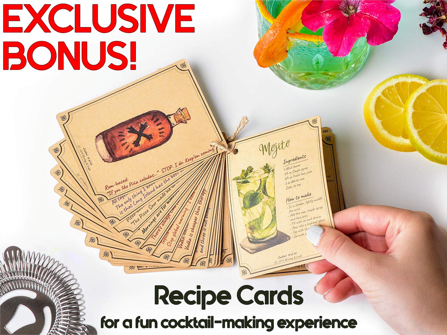 - Our bar tool set makes a great gift for anyone who loves mixing, while the included recipe cards allow you to create classic cocktails and the latest mixology trends.