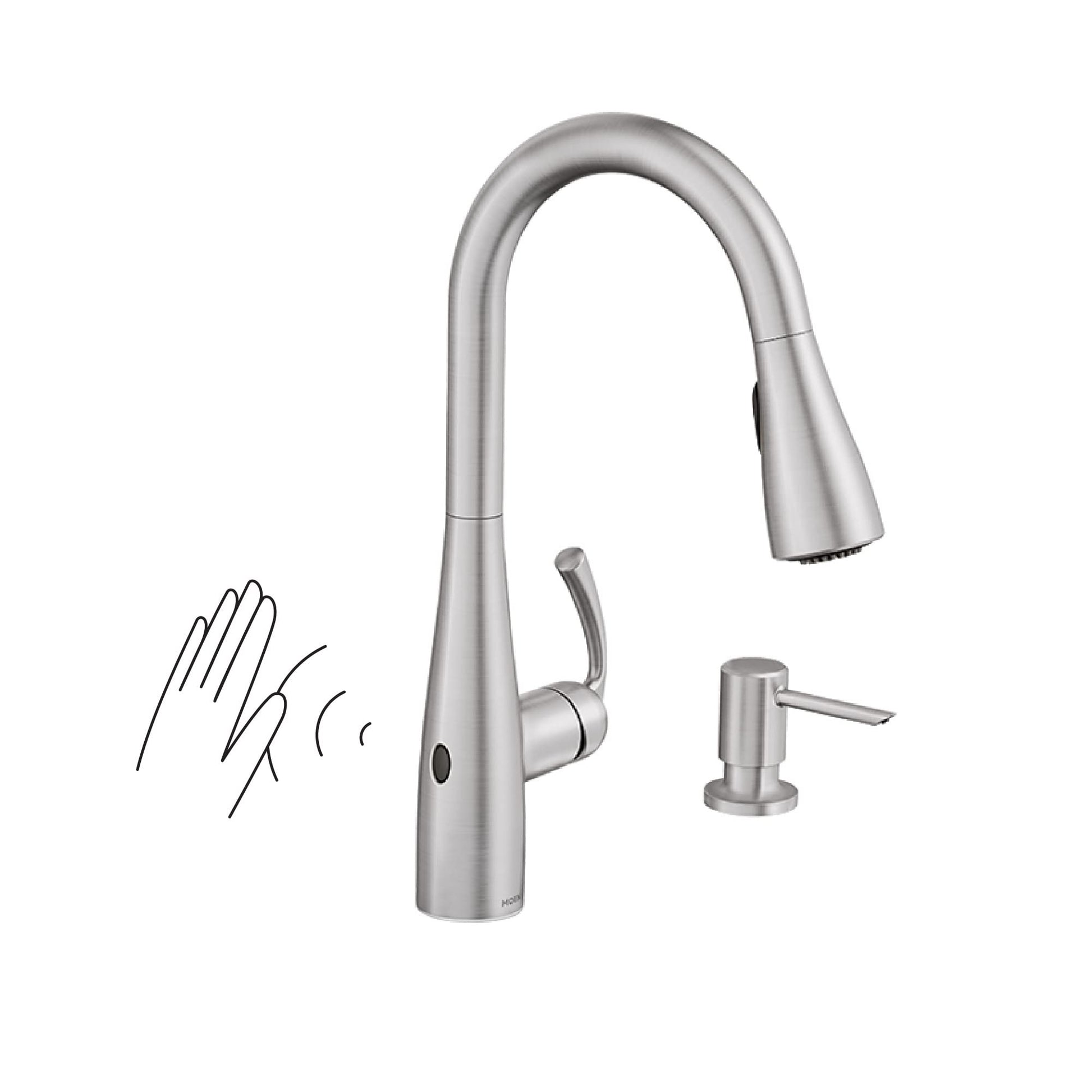 Moen Essie Spot Resist Stainless Touchless One-Handle Kitchen Faucet, Motion Activated Pull Down Kitchen Sink Faucet with Soap Dispenser, 87014EWSRS