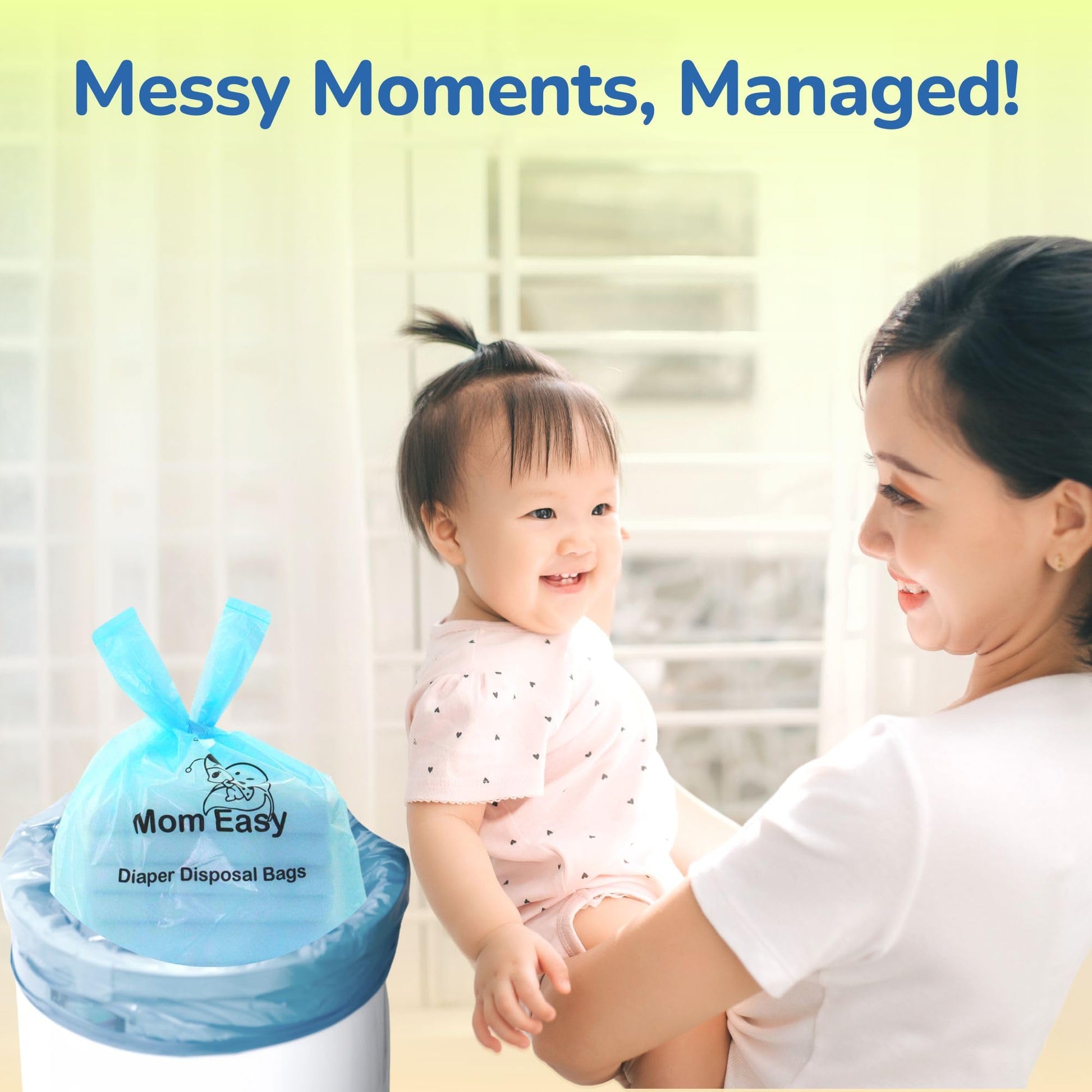 - π HIGH-QUALITY DIAPER BAGS DISPOSABLE: Mom Easy baby diaper sacks are made of premium materials, added with EPI technology, complies with ASTM D6954