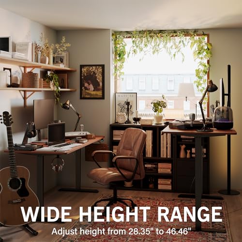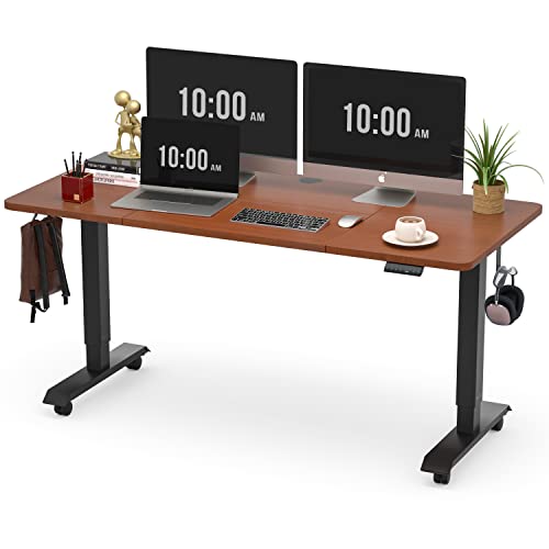 Monomi Electric Standing Desk, 55x28 Inches Adjustable Height Desk, Home Office Sit Stand Up Desk (Black Frame/Cherry Top)