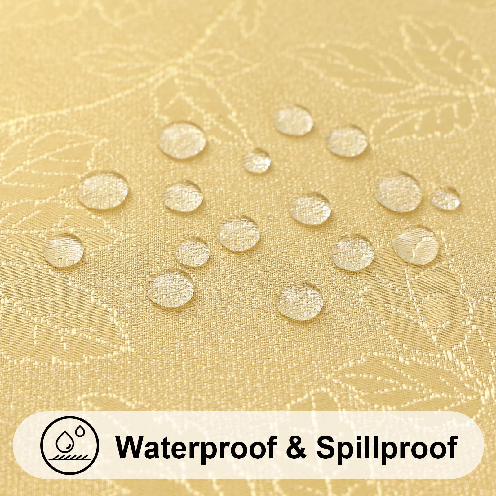- [Waterproof and Spillproof] Our premium Jacquard tablecloths are specially designed with a waterproof coating that repulses spills and stains, keeping your table protected and looking pristine