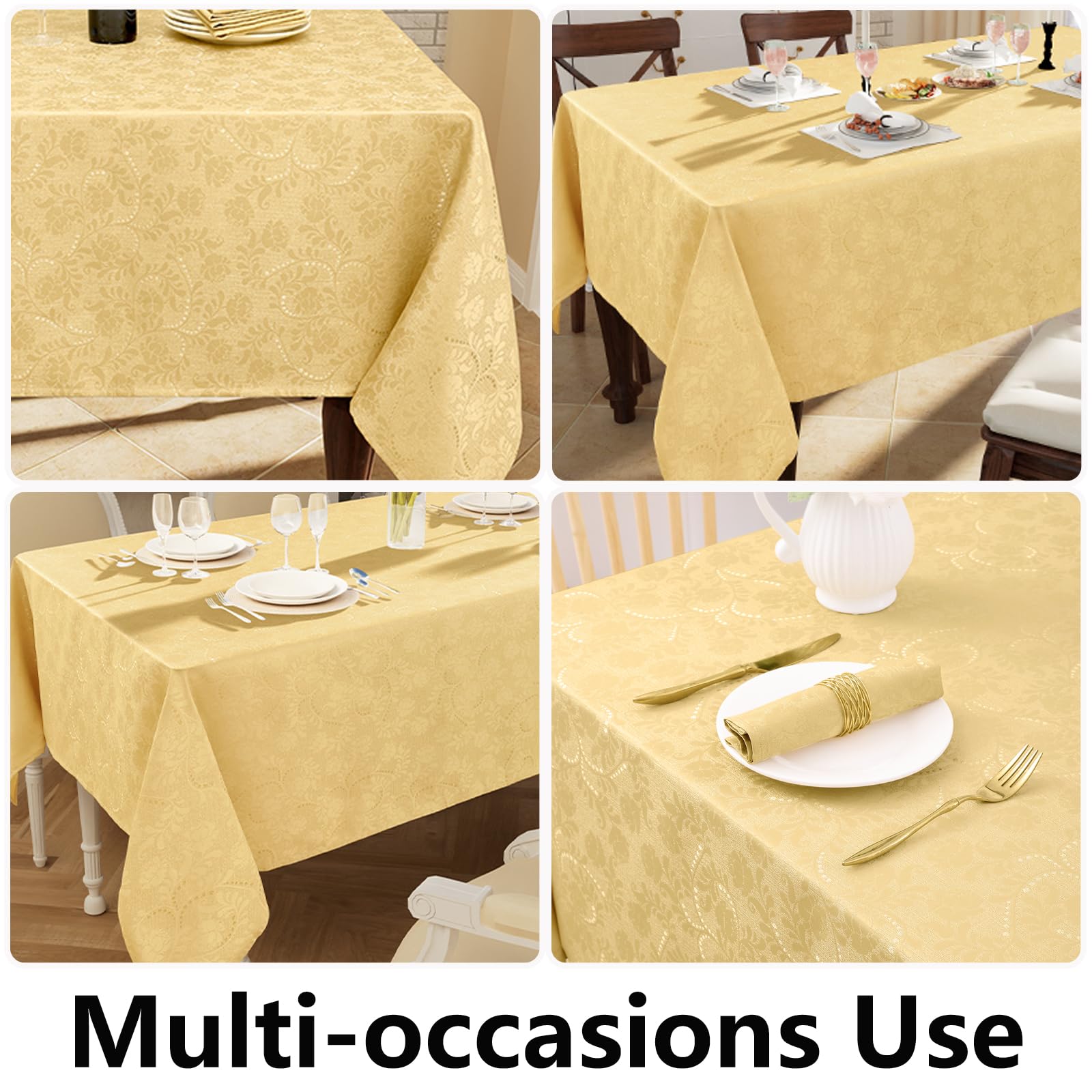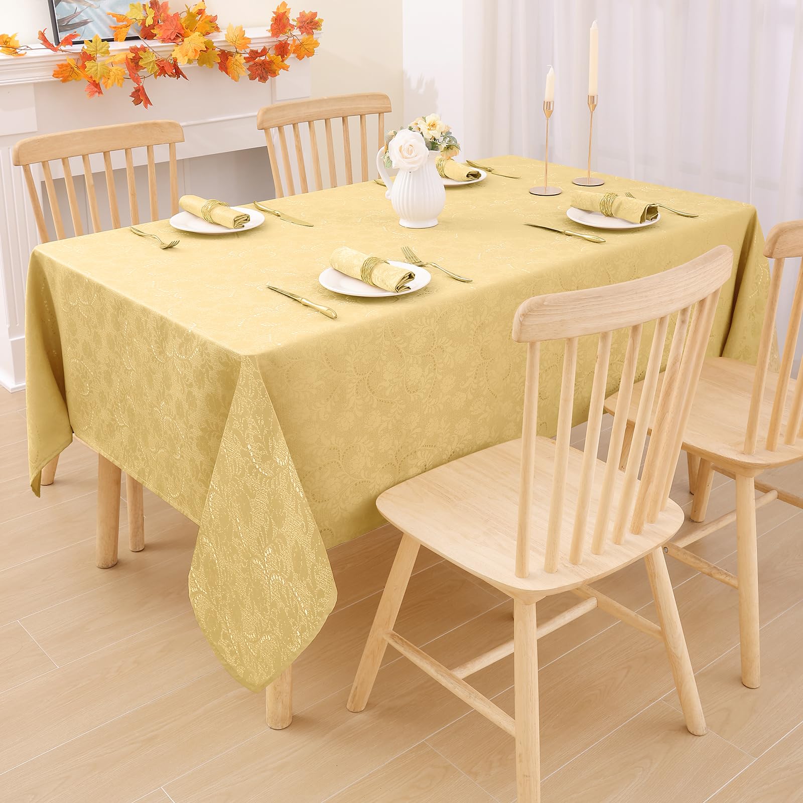 Moosfor Rectangle Tablecloth 60x84 Inch, Waterproof Damask Jacquard Table Cloth, Washable Fabric Table Covers for Dining, Parties, Indoor and Outdoor, Gold Vines