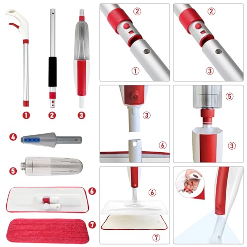 - ❤STURDY and DURABLE: Spray mop has a sturdy pole, with high quality design and structure. Mophead is made of impact-resistant plastic. Highly durable aluminum alloy pole for long-term use.
